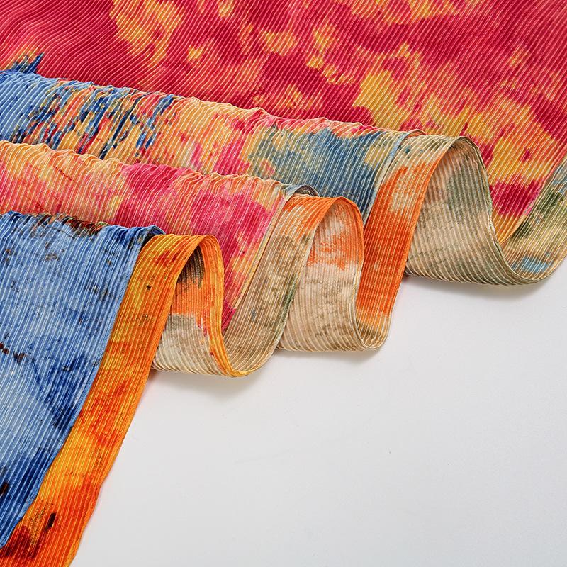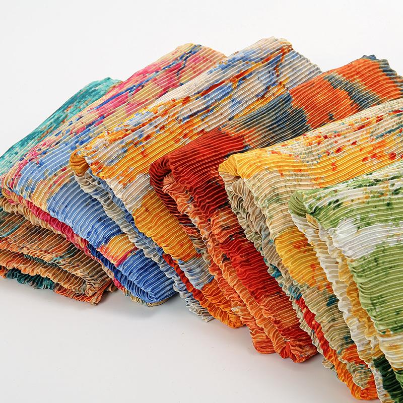 Pintura al óleo transfronteriza de gran venta puntera arrugada bufanda larga nueva satén de seda impresión avanzada bufanda Malaya Indonesia Medio Oriente