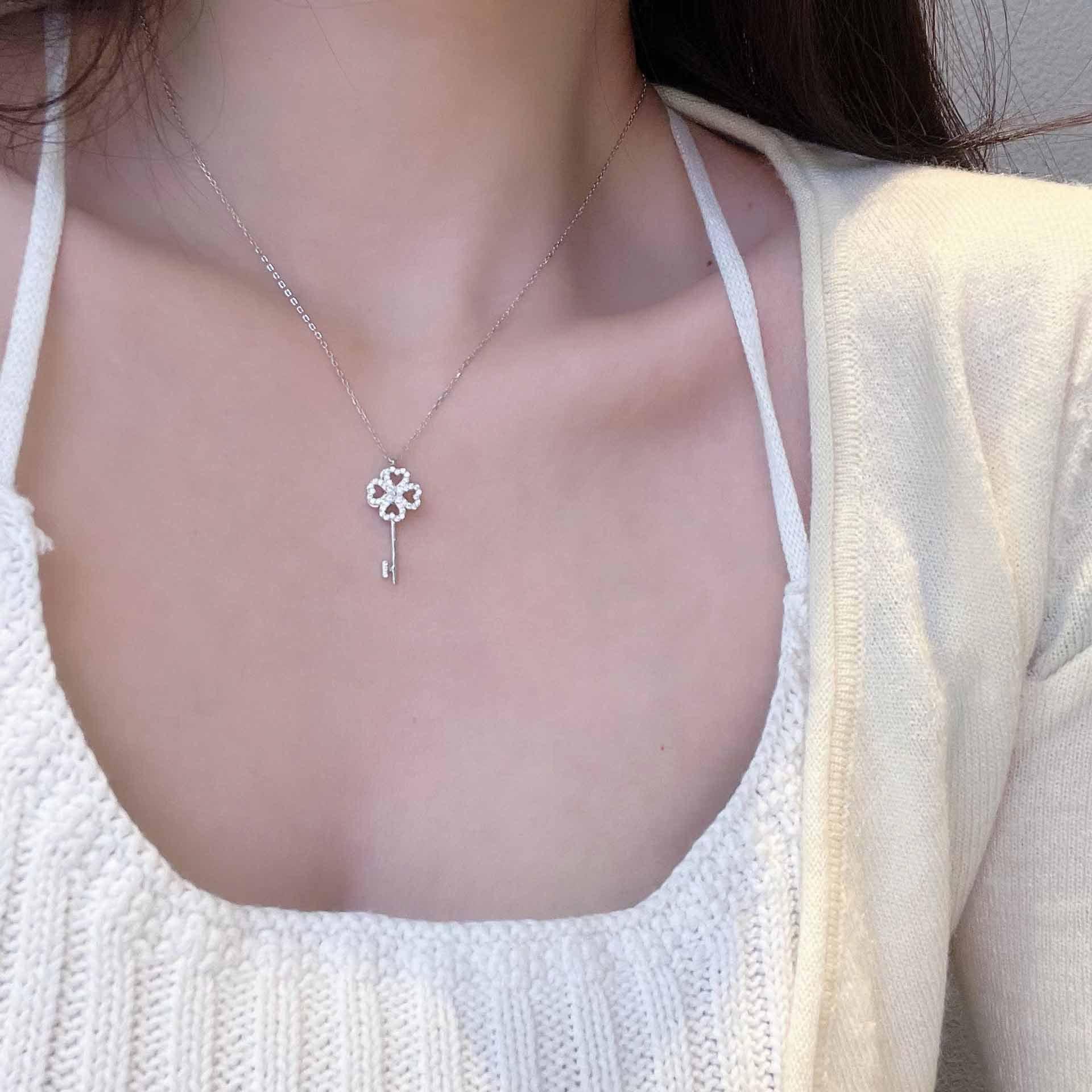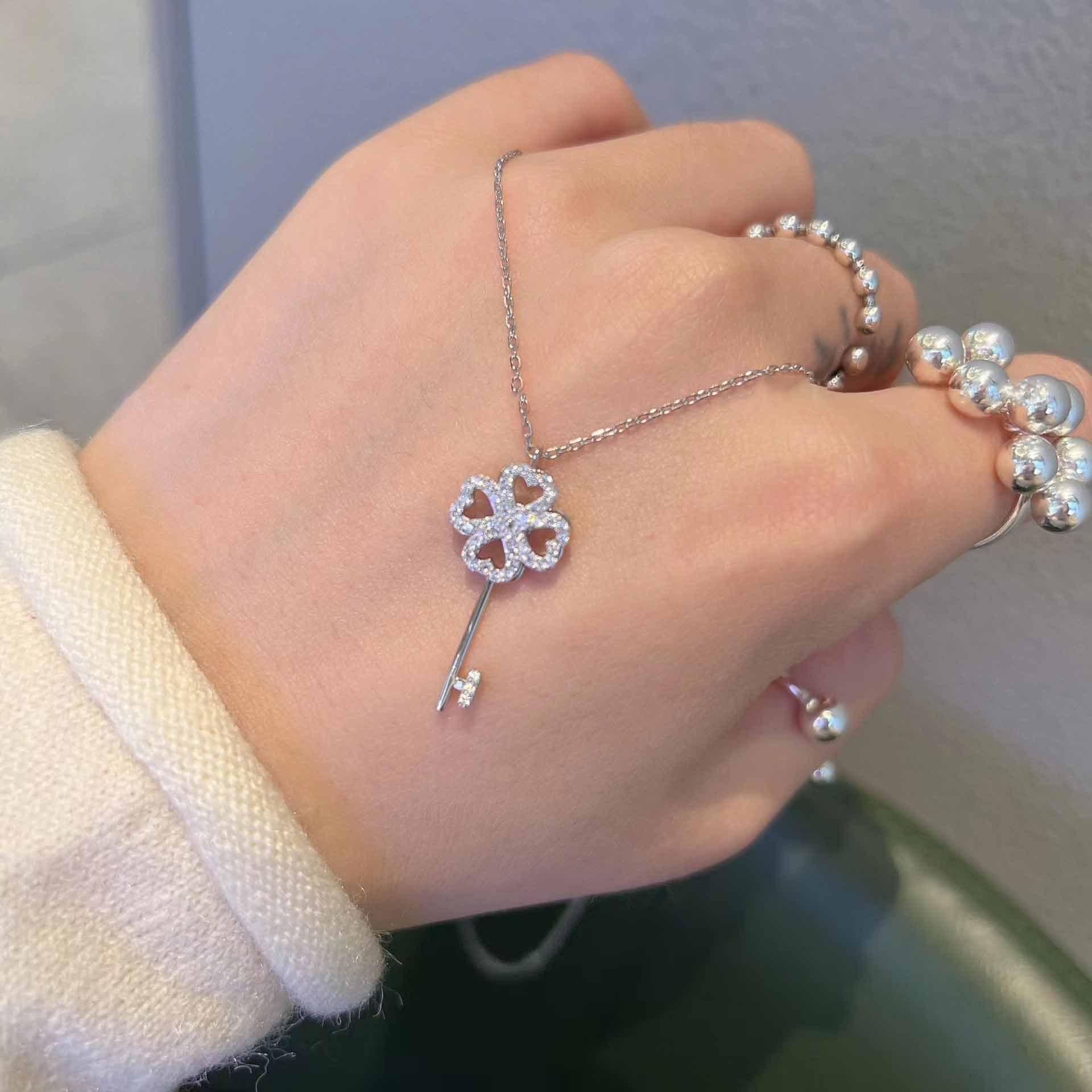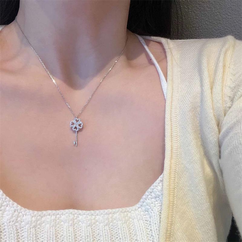Collar con llave de flor pequeña de la suerte para mujer, diseño ligero de lujo, lleno de diamantes, red roja, mismo estilo, nicho, colgante de pétalo simple de alta calidad