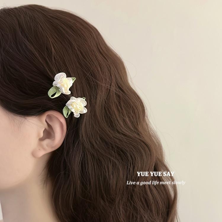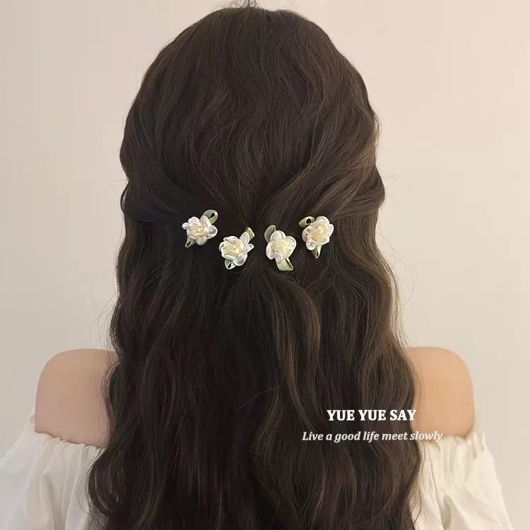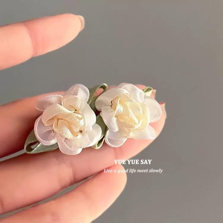 Horquilla de tela con forma de camelia, pequeña horquilla con temperamento, horquilla tridimensional de hada, pinza lateral de hada, accesorios para el cabello de alta calidad, tocado