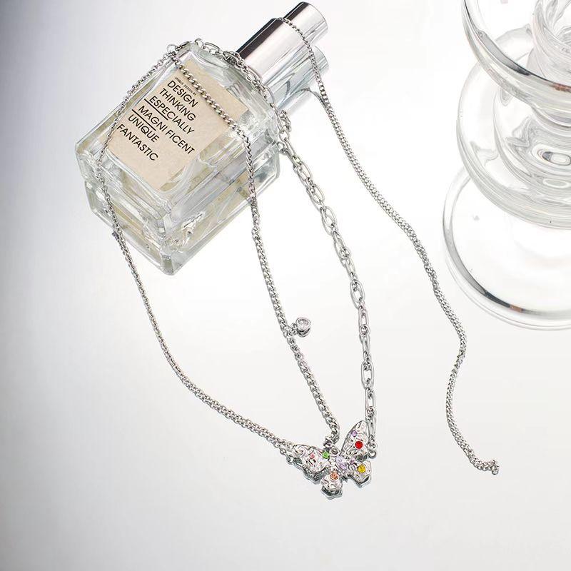 Collar de mariposa de lava para mujer, diseño de nicho, estilo dulce y fresco, textura con incrustaciones de circonita plateada, cadena de clavícula con borla.