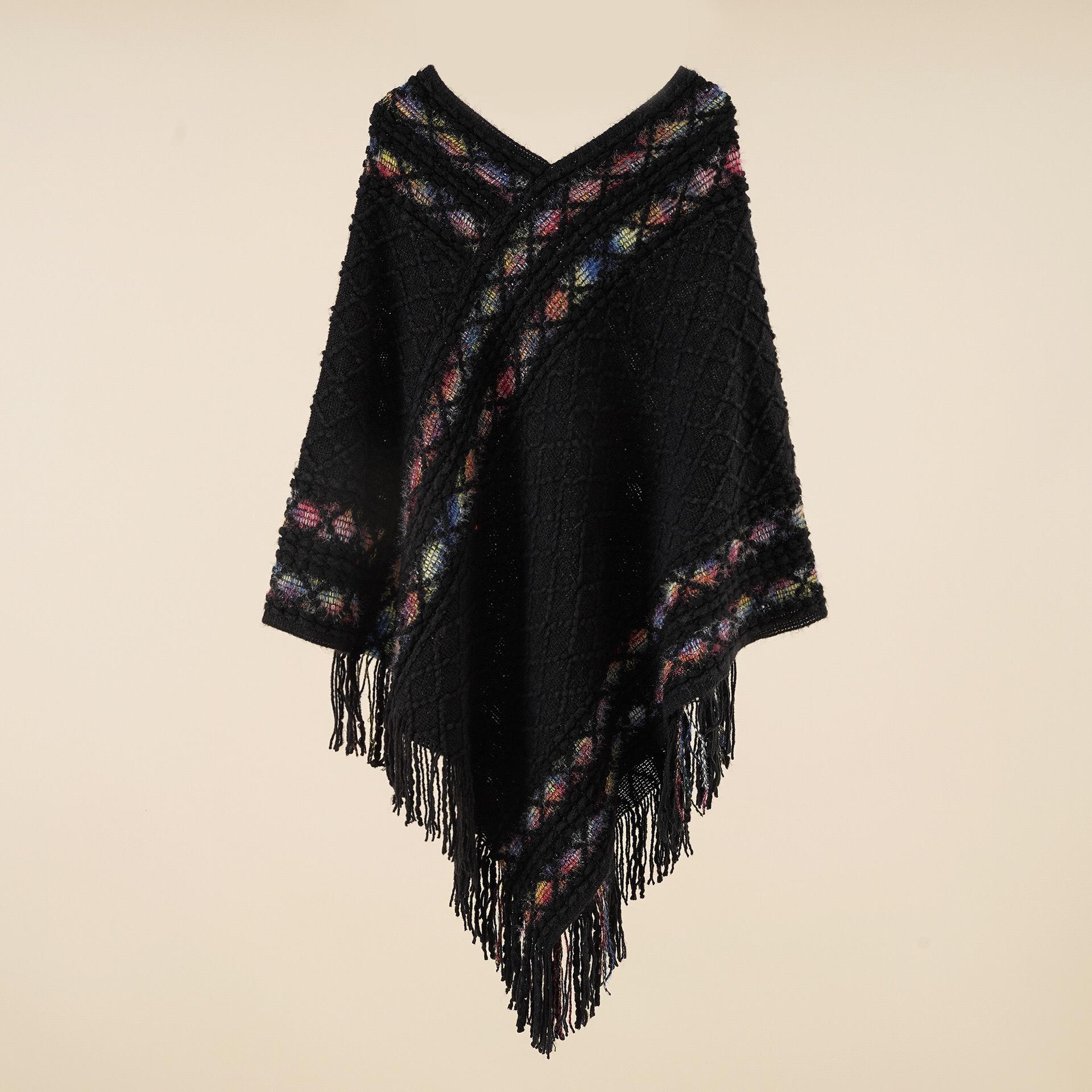 Nuevo jersey de estilo étnico retro para mujer, tipo chal, estilo capa, ropa de viaje de Yunnan, ropa exterior con borlas, abrigo de punto