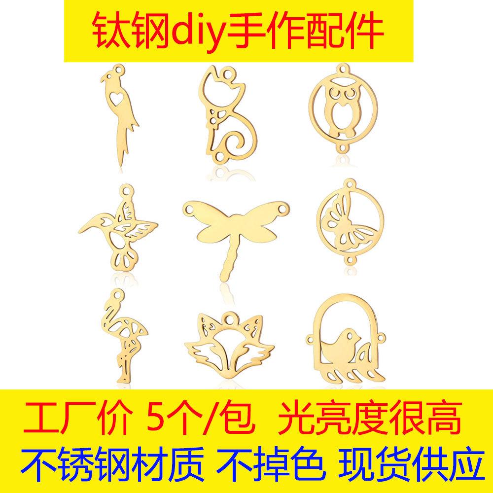 5 piezas/paquete colgante sello de acero de titanio Águila Flamenco Cabeza de zorro mariposa Libélula acero inoxidable accesorios DIY
