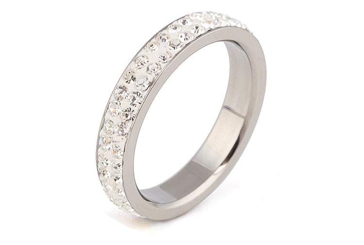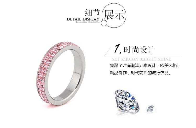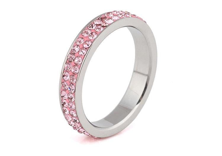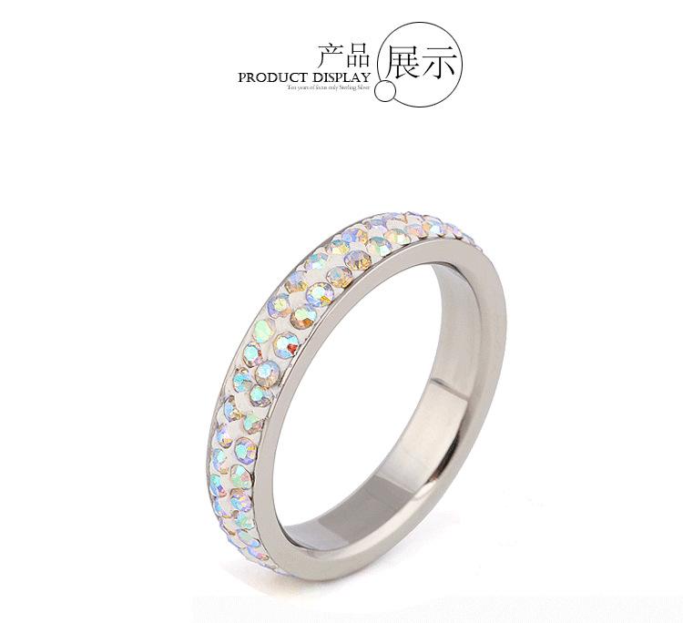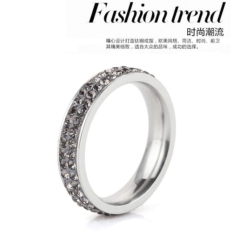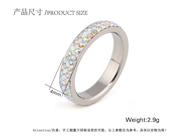 Fabricante Venta al por Mayor Europeo y Americano Simple y Personalizado Anillo de Acero de Titanio Multicolor Incrustado de Diamantes de Doble Fila de 4 mm Anillo de Acero Inoxidable para Estudiante