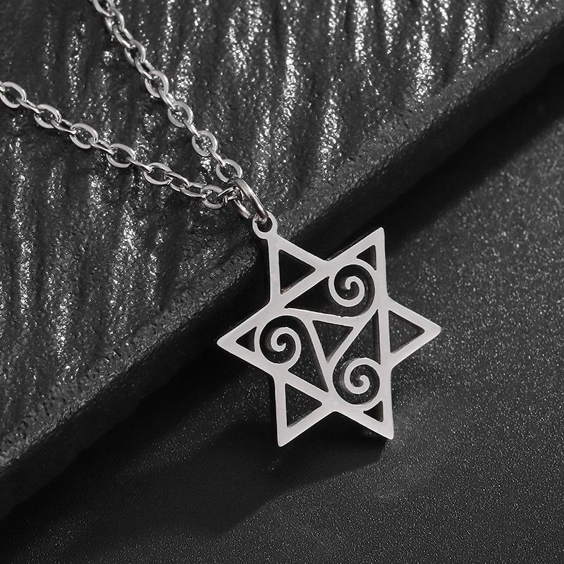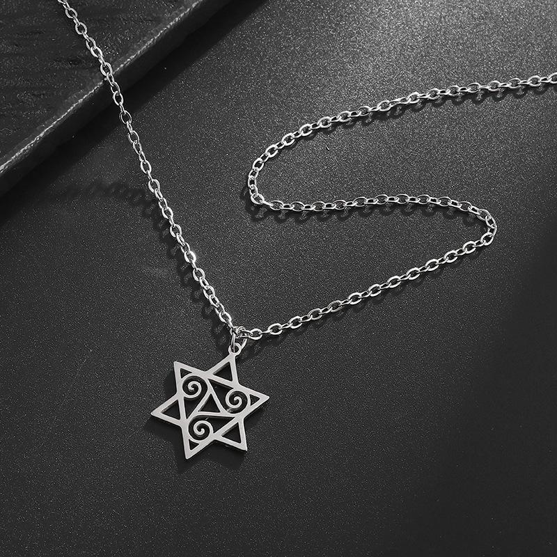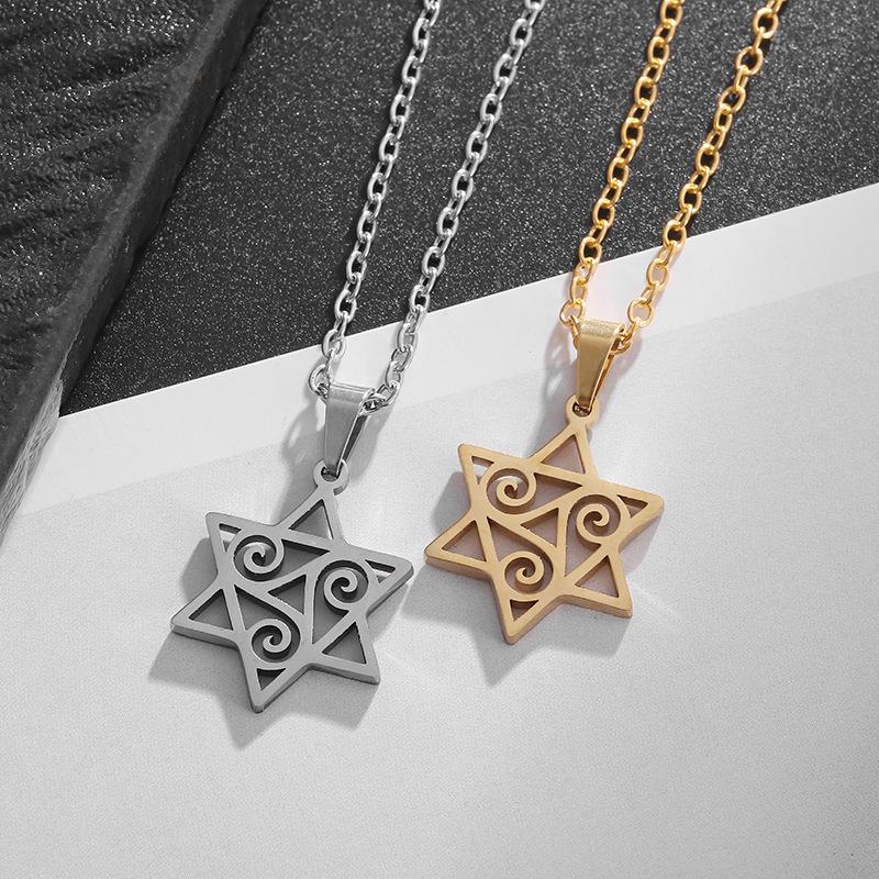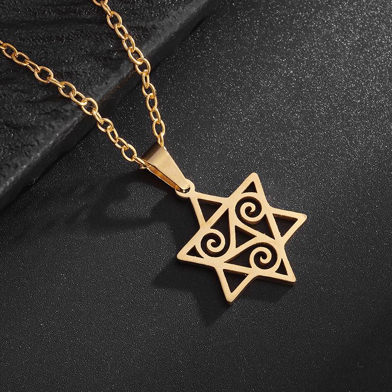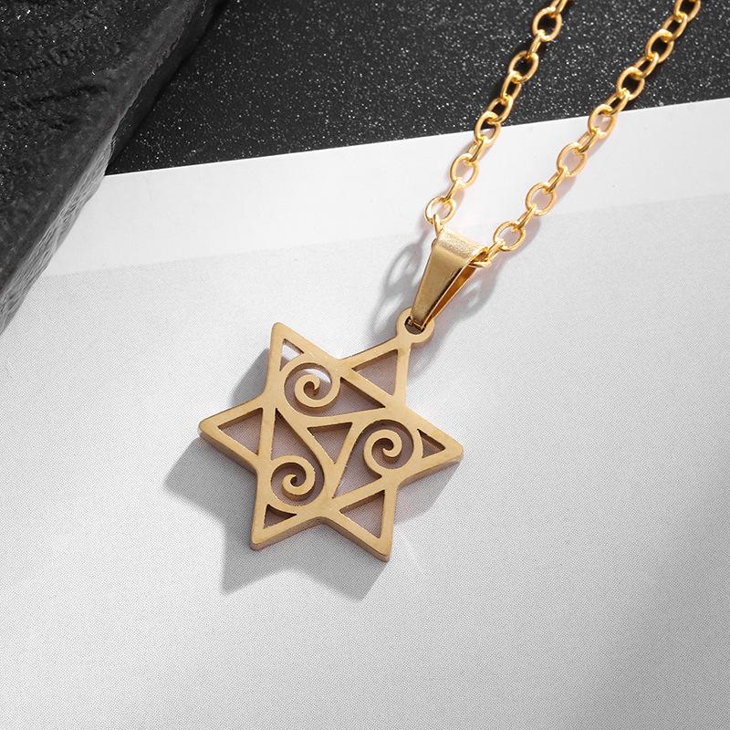 Collar para hombre de acero inoxidable chapado en oro con serie de estrellas de seis puntas de moda simple transfronteriza entre Europa y Estados Unidos que no se desvanece con el collar