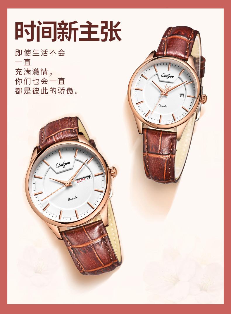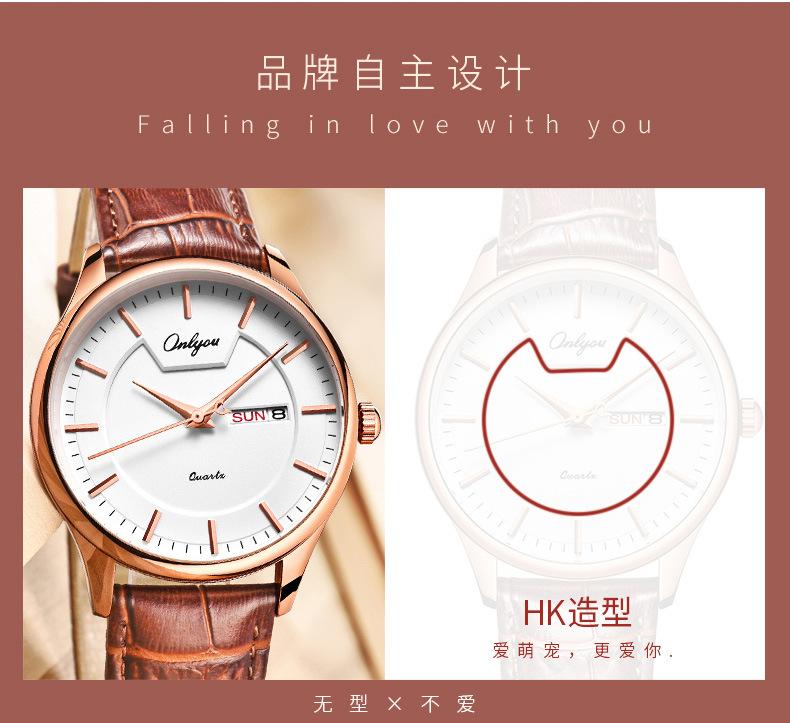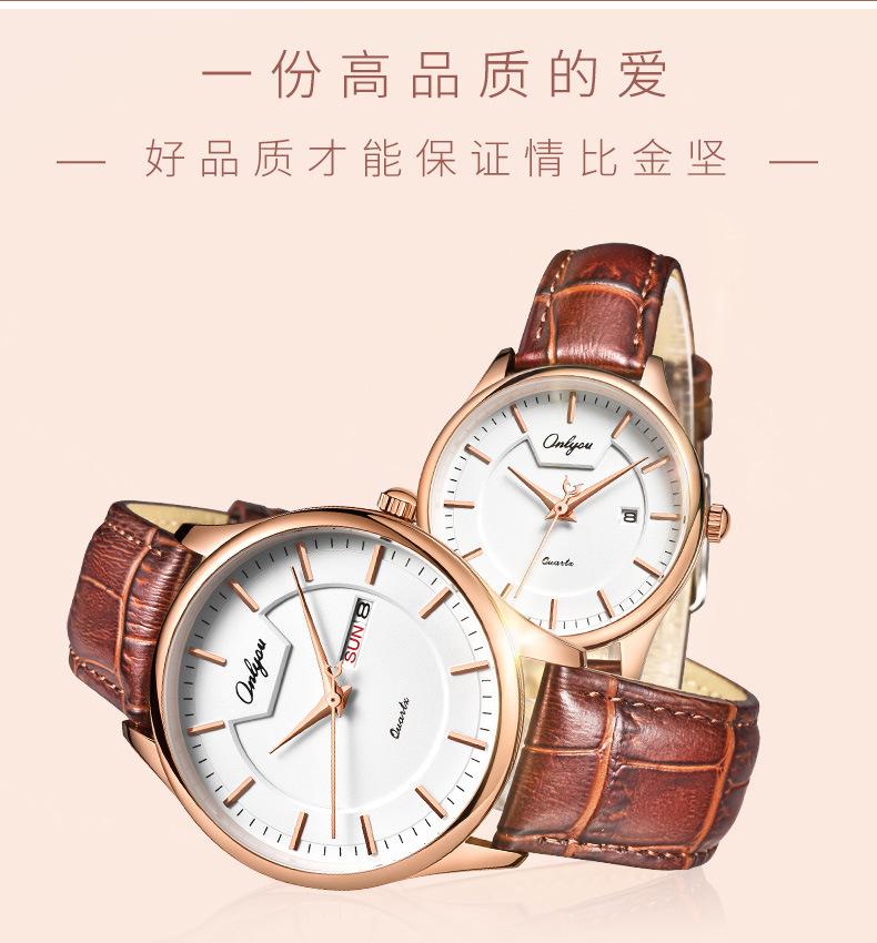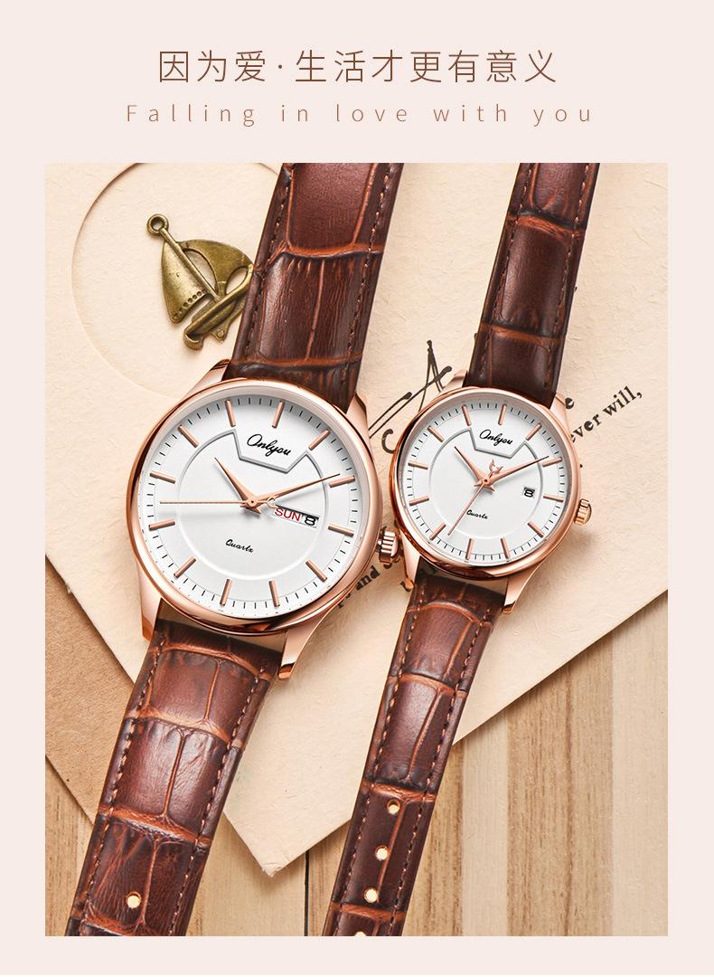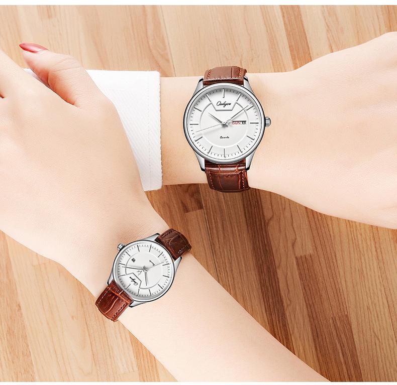 Nuevo Reloj de Pareja con Doble Calendario Precio de Par para Hombre y Mujer 2023 Nuevo Reloj de Cuero Vacuno Impermeable con Letras de Marca