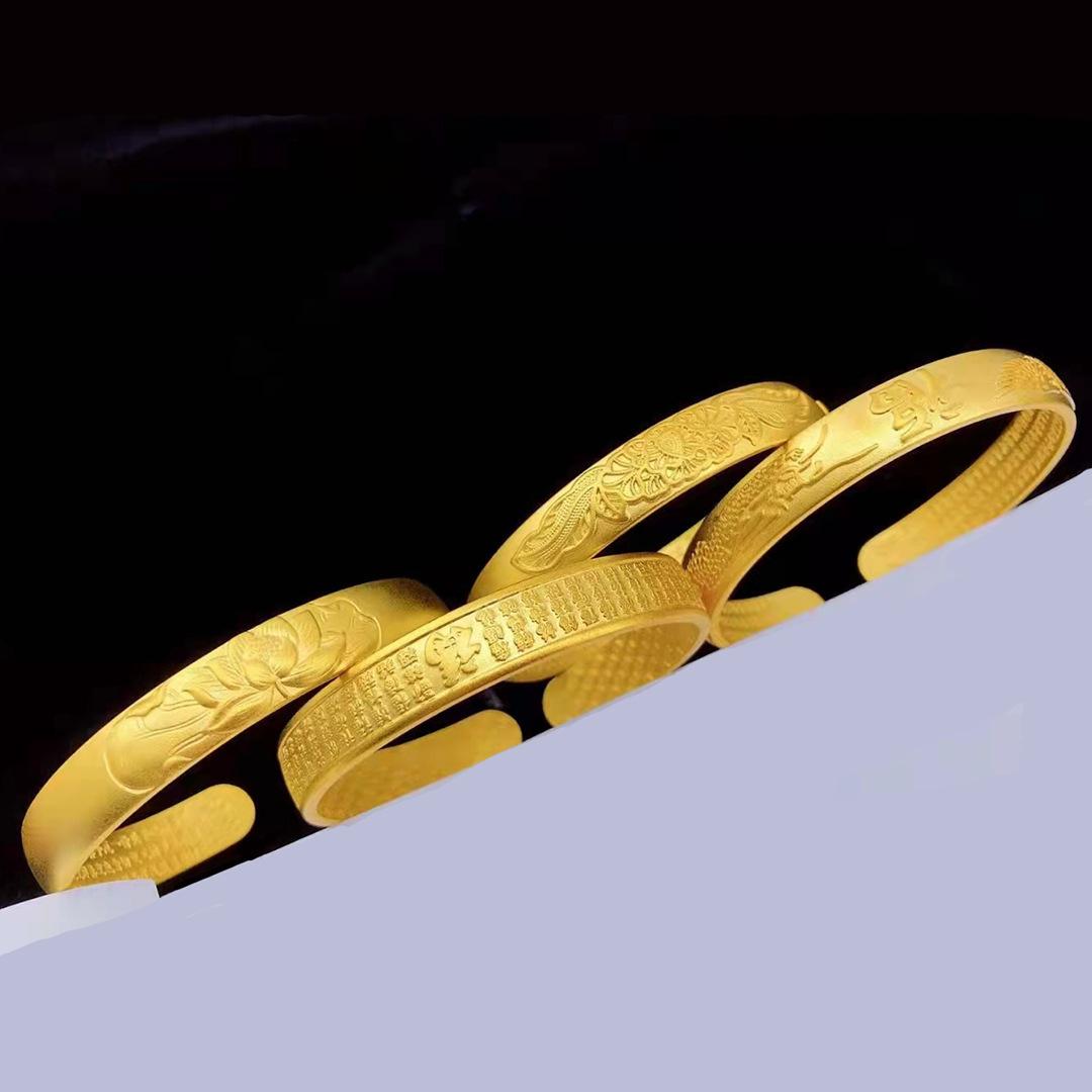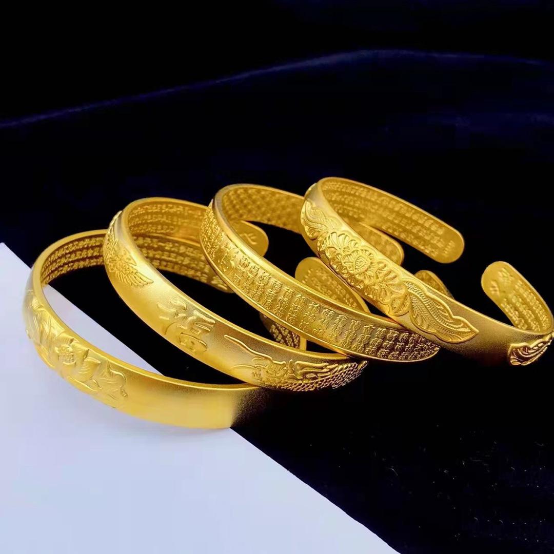 Pulsera Vietnam Sha Gold Apertura Baifu Sutra del Corazón Oro Latón Chapado Dragón y Fénix Pulsera de la Fortuna Pulsera de Loto Vintage para Mujer
