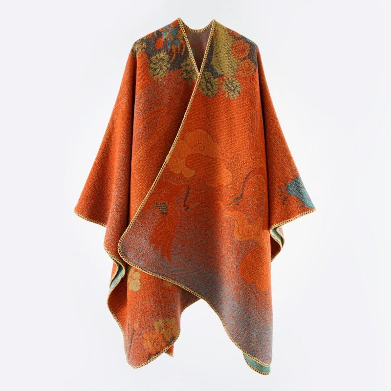 • Nuevo chal dividido cálido de moda de estilo étnico europeo y americano de otoño e invierno, capa de cachemira de imitación, bufanda floral, chal femenino