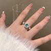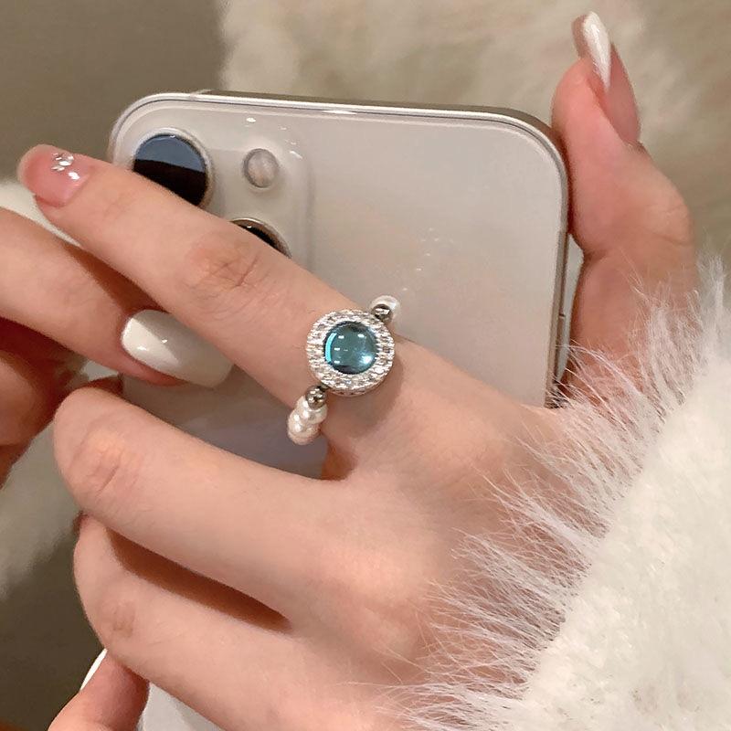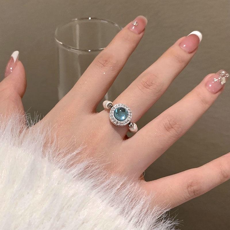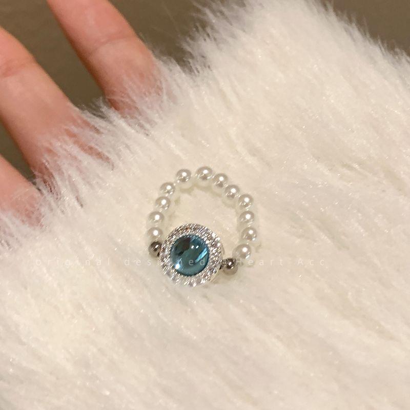 Anillo de Cuentas de Perlas de Zircón Azul para Mujer, Ins Nicho Lujo Ligero 2025 Nueva Moda Anillo de Dedo Índice de Cuerda Elástica