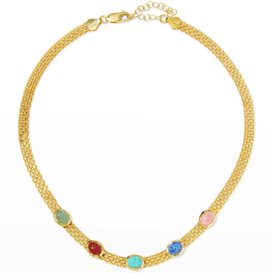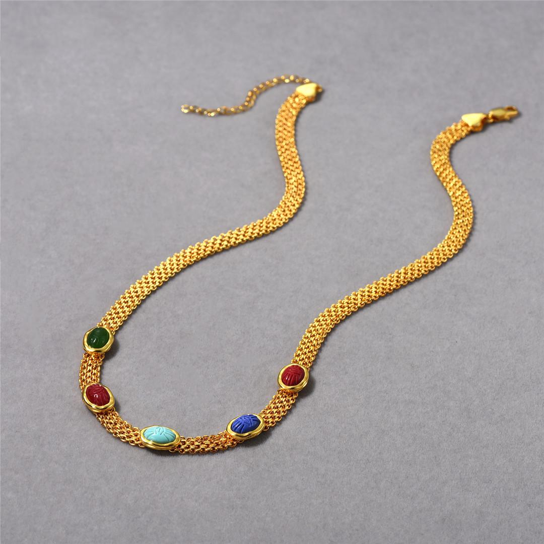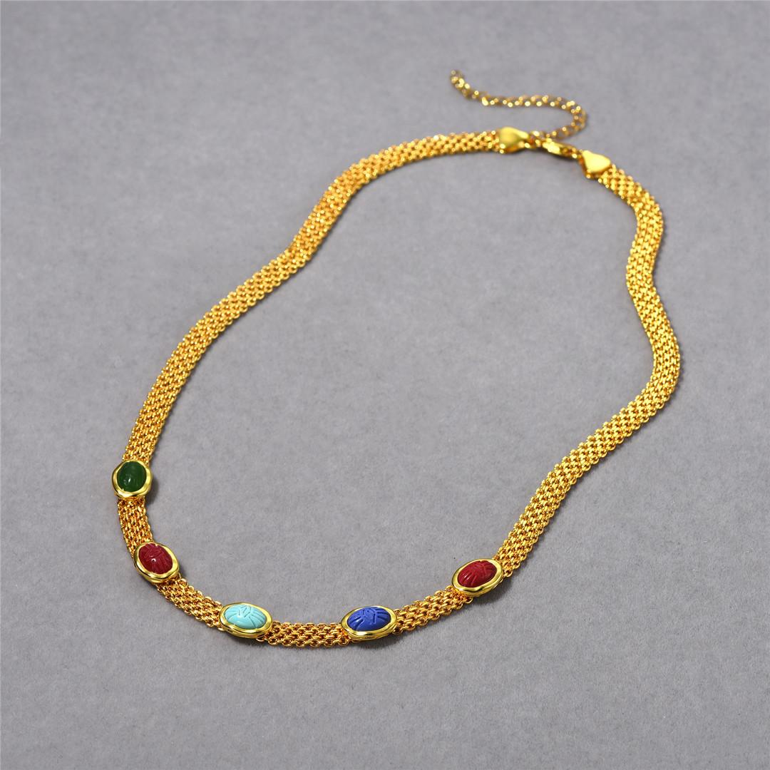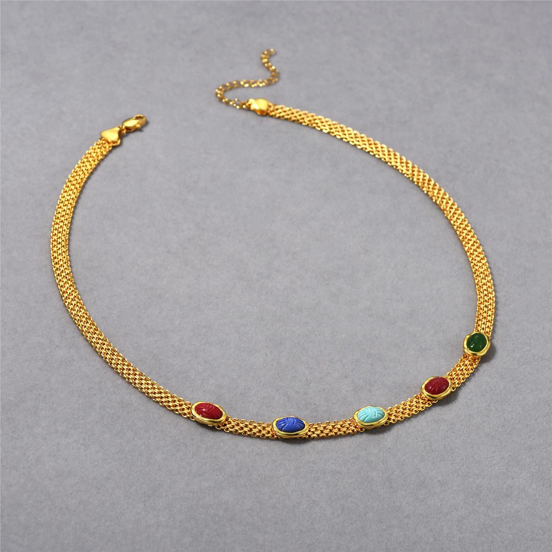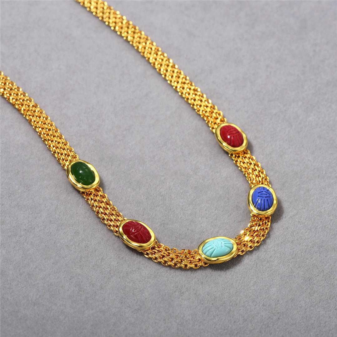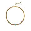 Collar de cara ancha de lujo con cadena de clavícula de gemas coloridas con incrustaciones de oro real de 18 quilates chapado en cobre de metal de alta calidad europeo y americano