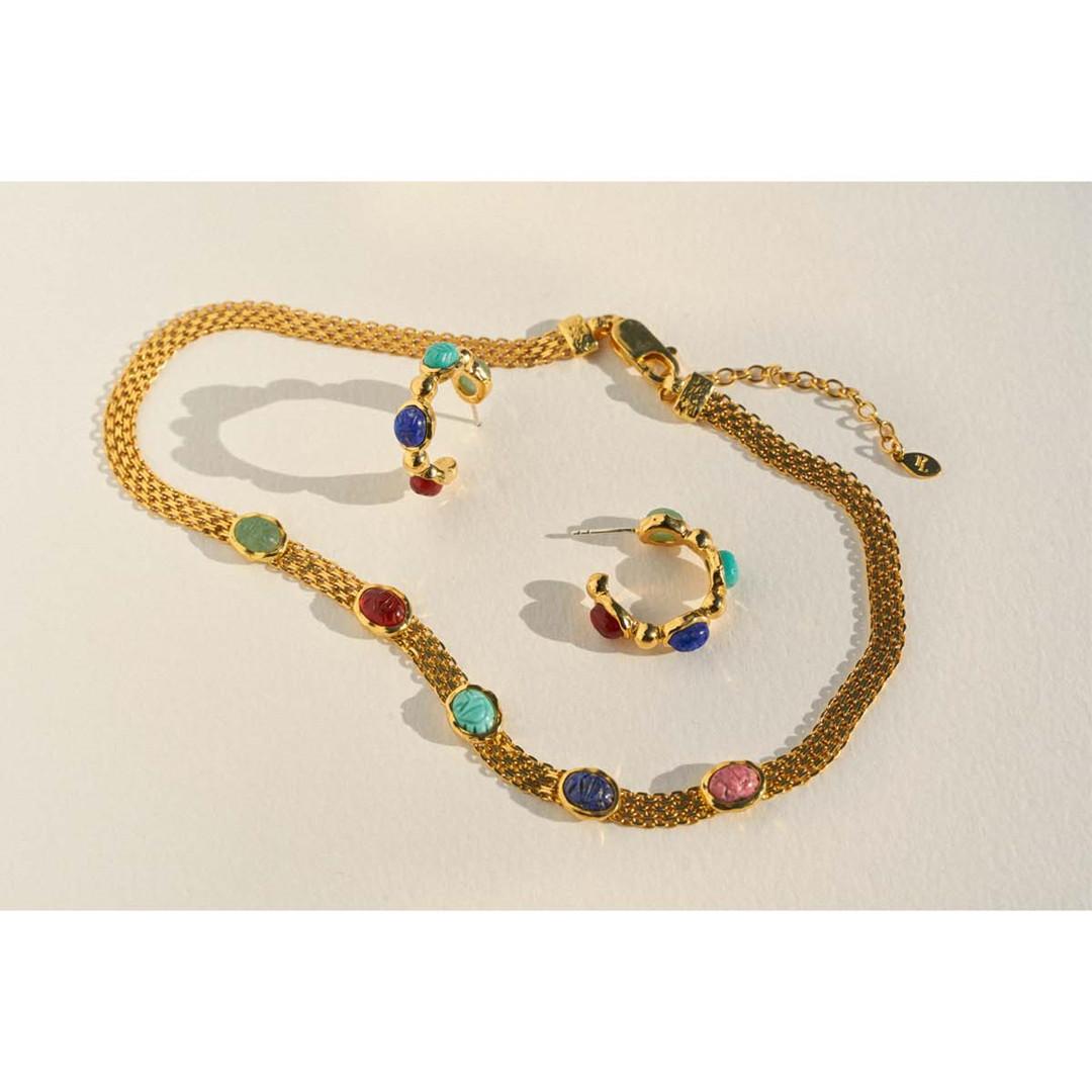 Material: Latón chapado en oro real de 18k + piedras preciosas coloridas