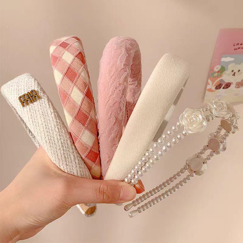 Diadema de borde ancho superior de cráneo alto color fresco pequeño femenino horquilla de alto sentido diadema para salir lavado de cara mechón de pelo tocado verano