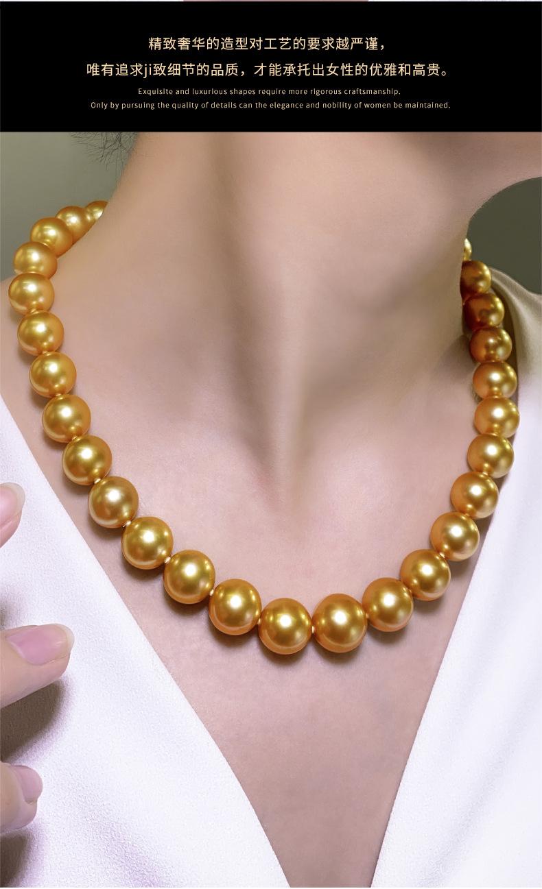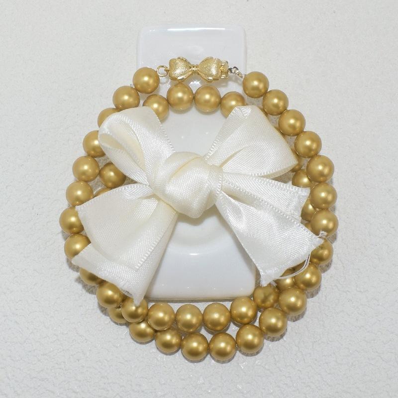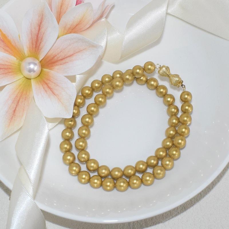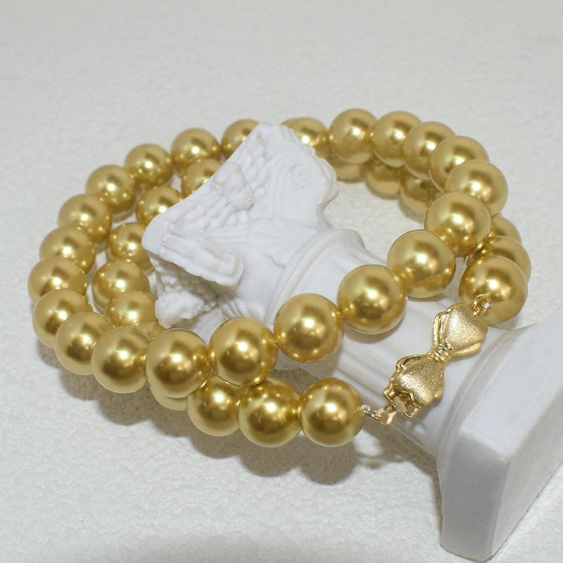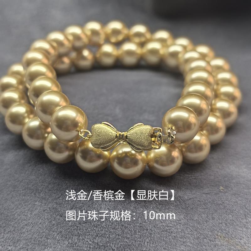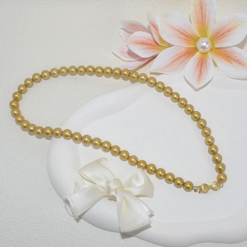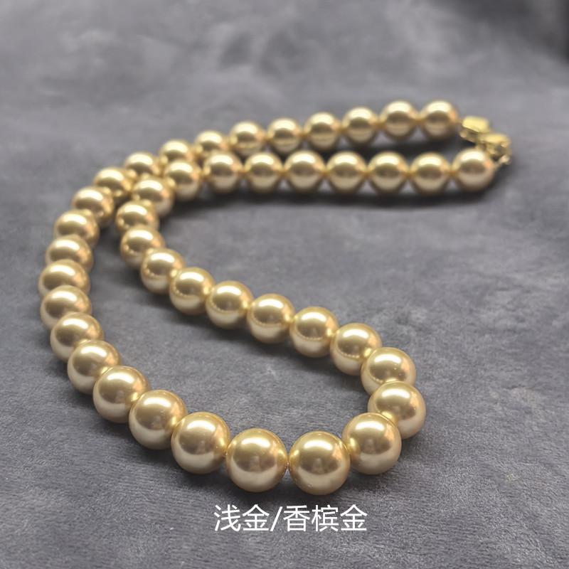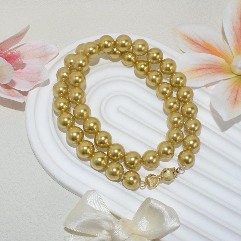 Collar de cuentas redondas de oro brillante, collar de perlas, suministro al por mayor, cuentas de concha de nácar