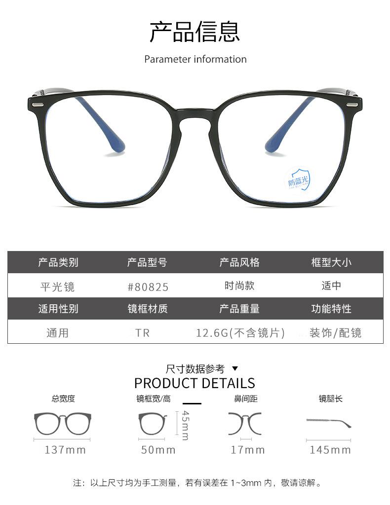 Bright black frame, Sand black frame, Gray frame, Transparent tea frame, Transparent frame
