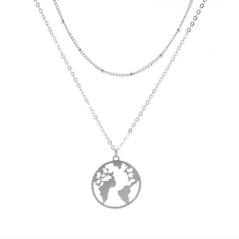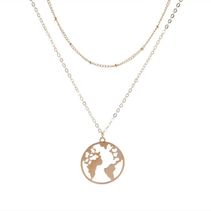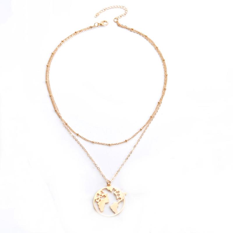 Collar con colgante de mapa y cadena de clavícula con personalidad de aleación para mujer, moda transfronteriza de Europa y Estados Unidos