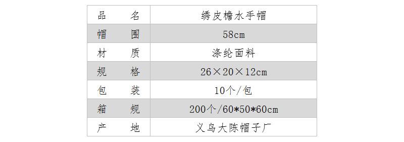 Somos una fábrica de sombreros de origen, especializada en la producción de todo tipo deGorro de marinero, gorro de policía, gorro de médico, gorro de cocinero...Fuera de línea, tenemos nuestra propia fábrica (Yiwu Dachen Jinhuang Jiayuan) y tienda (Yiwu International Trade City District 4).Comercio exterior transfronterizoProveedor, los sombreros se utilizan principalmente paraCombinación de ropa y uniformes,Actuaciones del festival(Víspera de Todos los Santoscosplay) etc.Alto rendimiento en relación calidad-precioProfundamente querido y reconocido por clientes nuevos y antiguos.