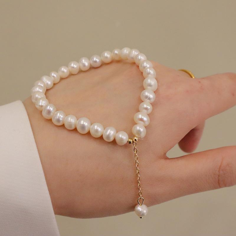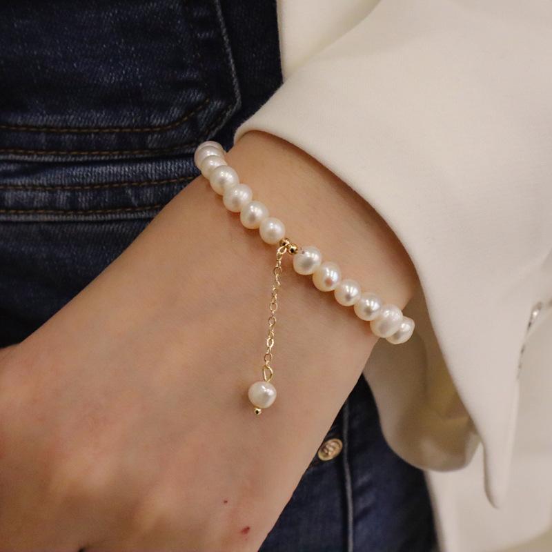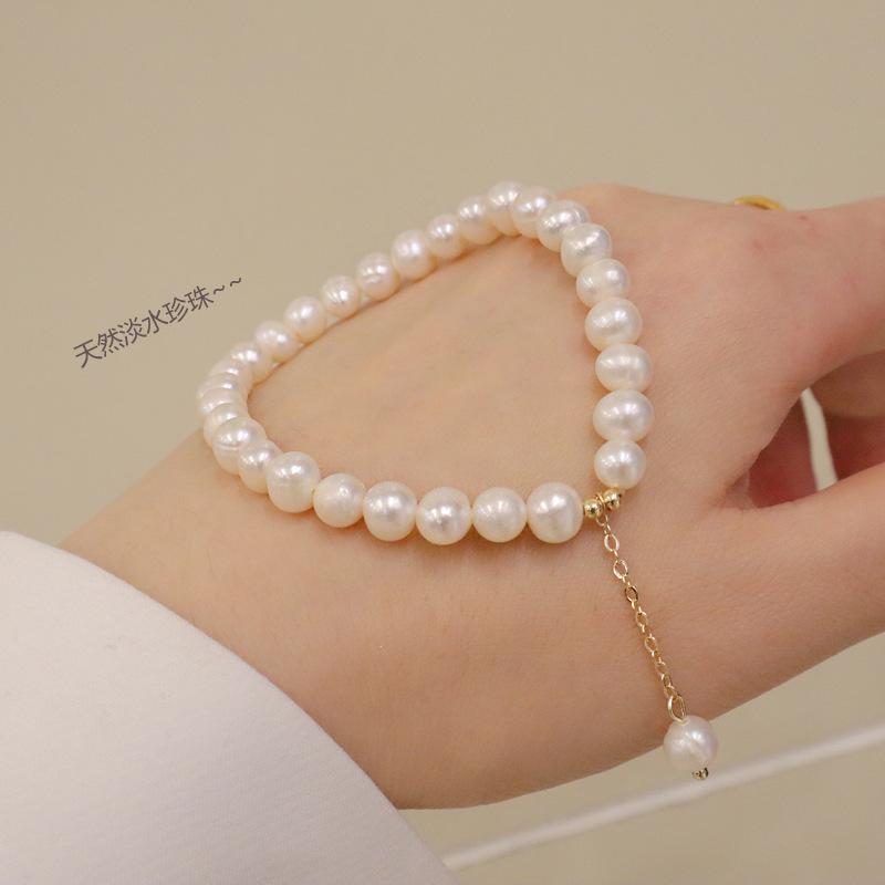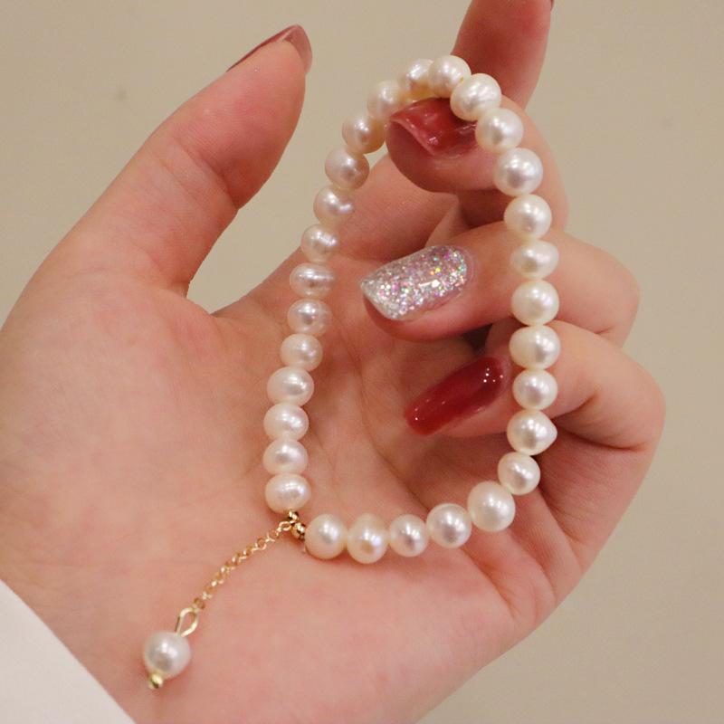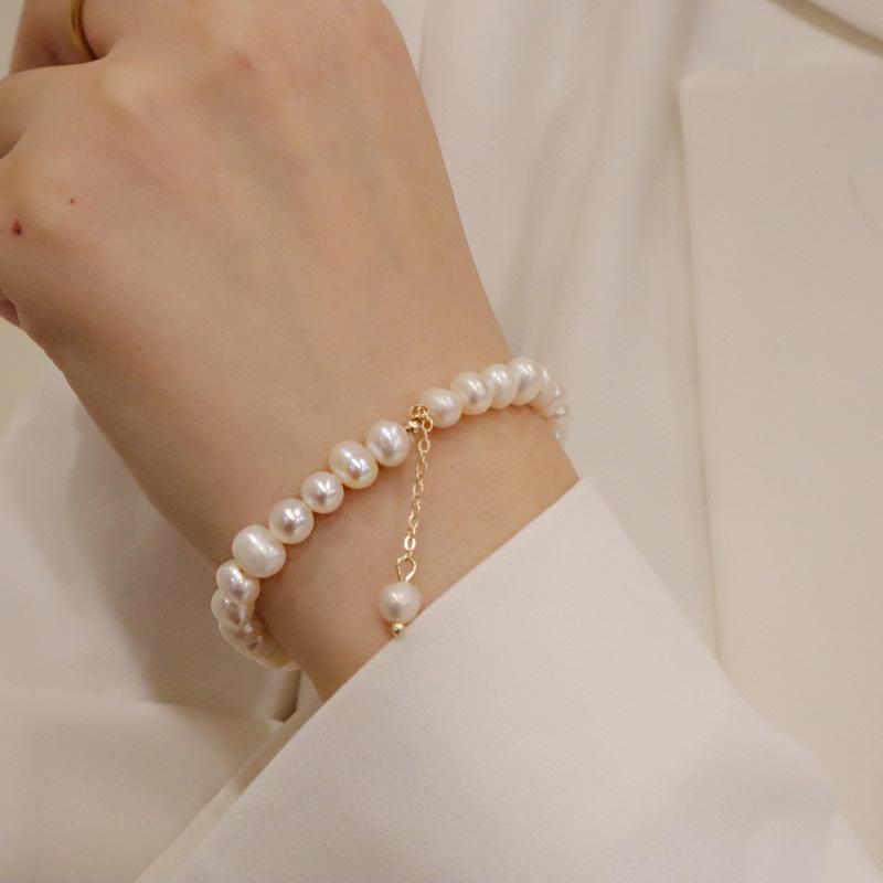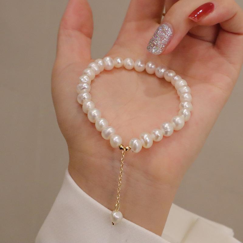 Pulsera de Perlas de Agua Dulce para Mujer Diseño Nicho ins Estilo Simple Frío Estilo Coreano Celebridad de Internet Mismo Estilo Joyería para Novia