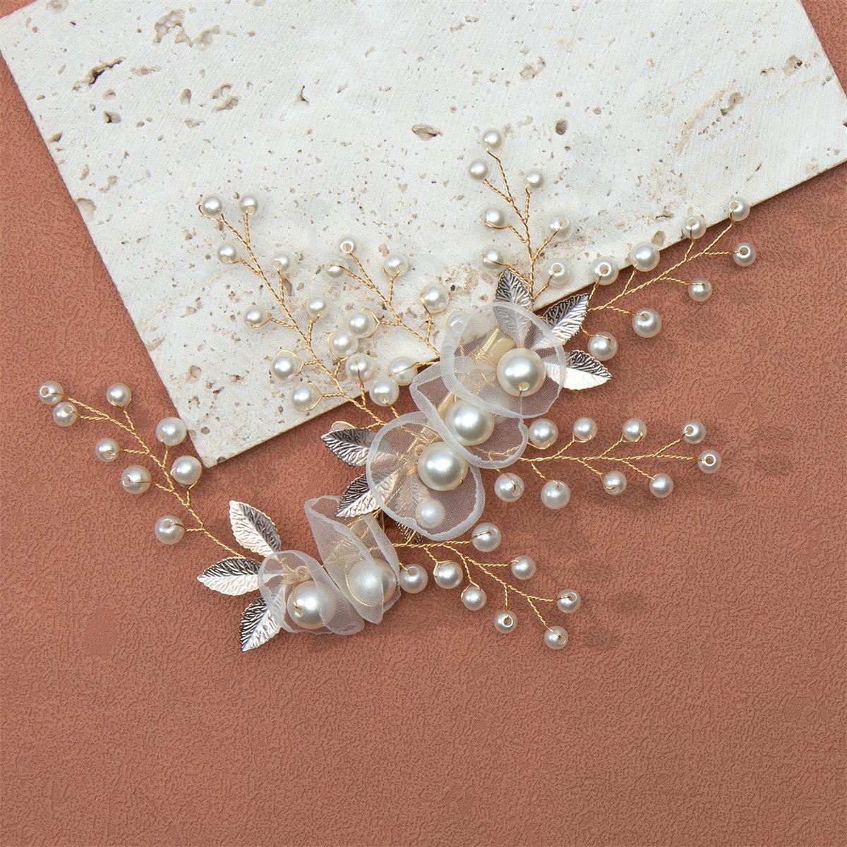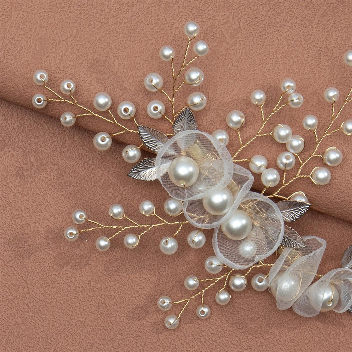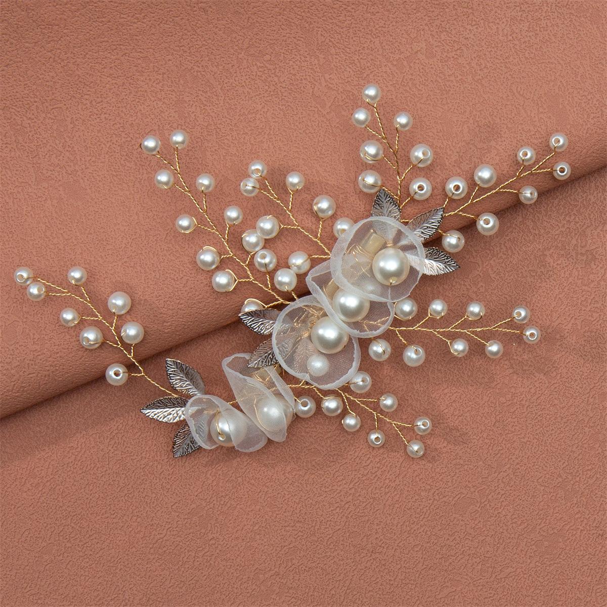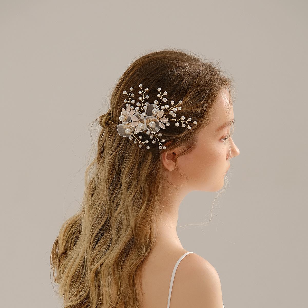 Joyería nupcial europea y americana, fotografía de bodas, retrato, tocado a juego, tela, flor, perla, horquilla, clip con borde de cuentas hecho a mano
