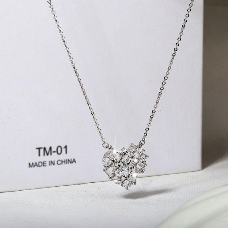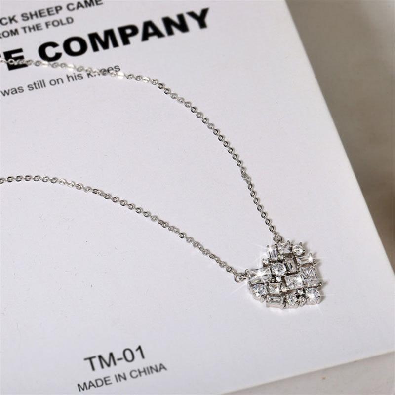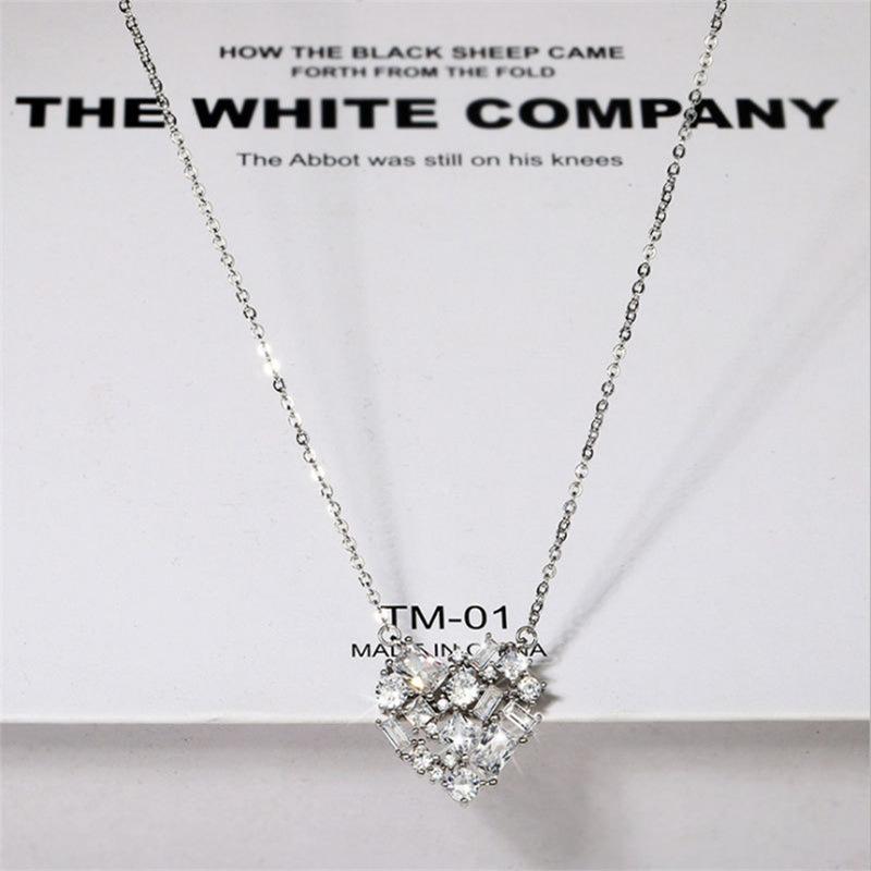 Collar con colgante de corazón nuevo y fresco de moda japonesa y coreana, cadena de clavícula de circonita para mujer, joyería sencilla de amor con celebridades de Internet