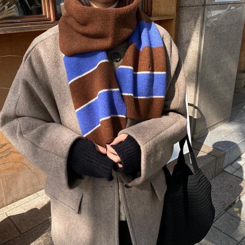 Bufanda de mujer para otoño e invierno, nueva moda, de cachemira, tejida a rayas, para hombres y mujeres, cálida y combinable.