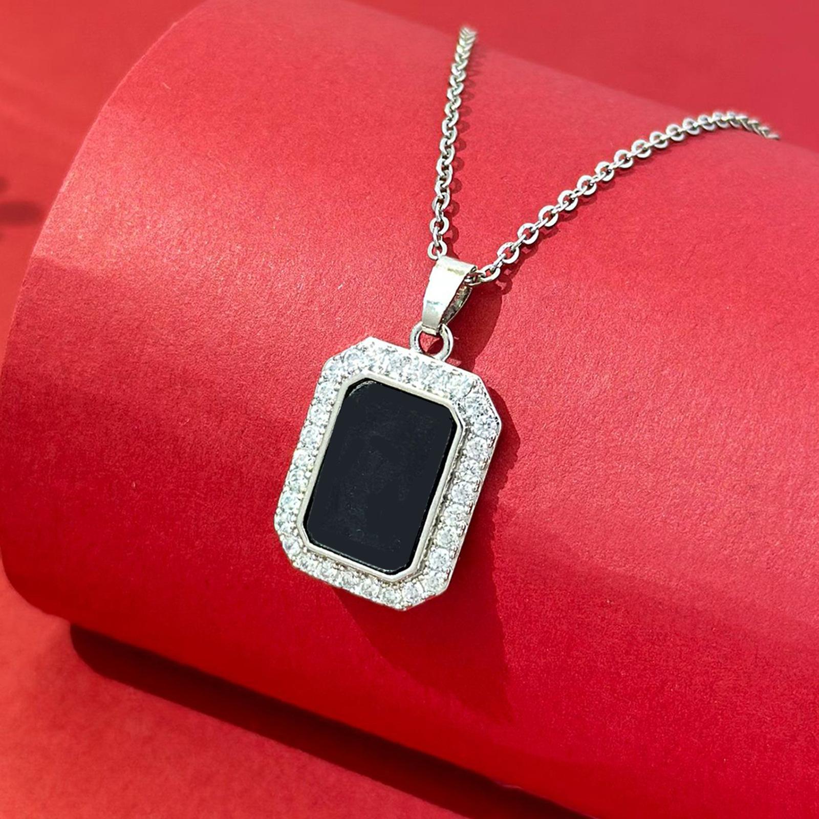 D938 silver black card necklace