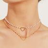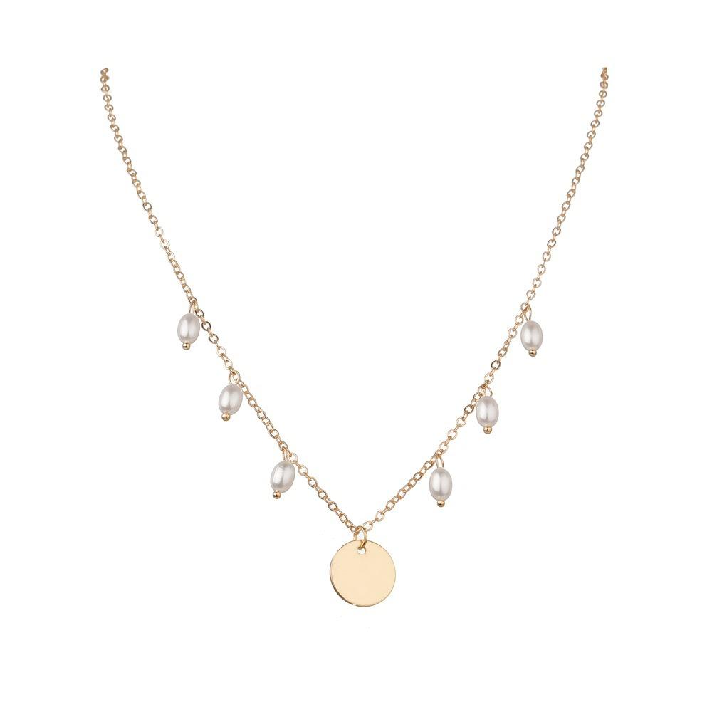 Collar de metal con colgante de oblea de perla personalizado transfronterizo europeo y americano, collar de moda para mujer, cadena de clavícula al por mayor