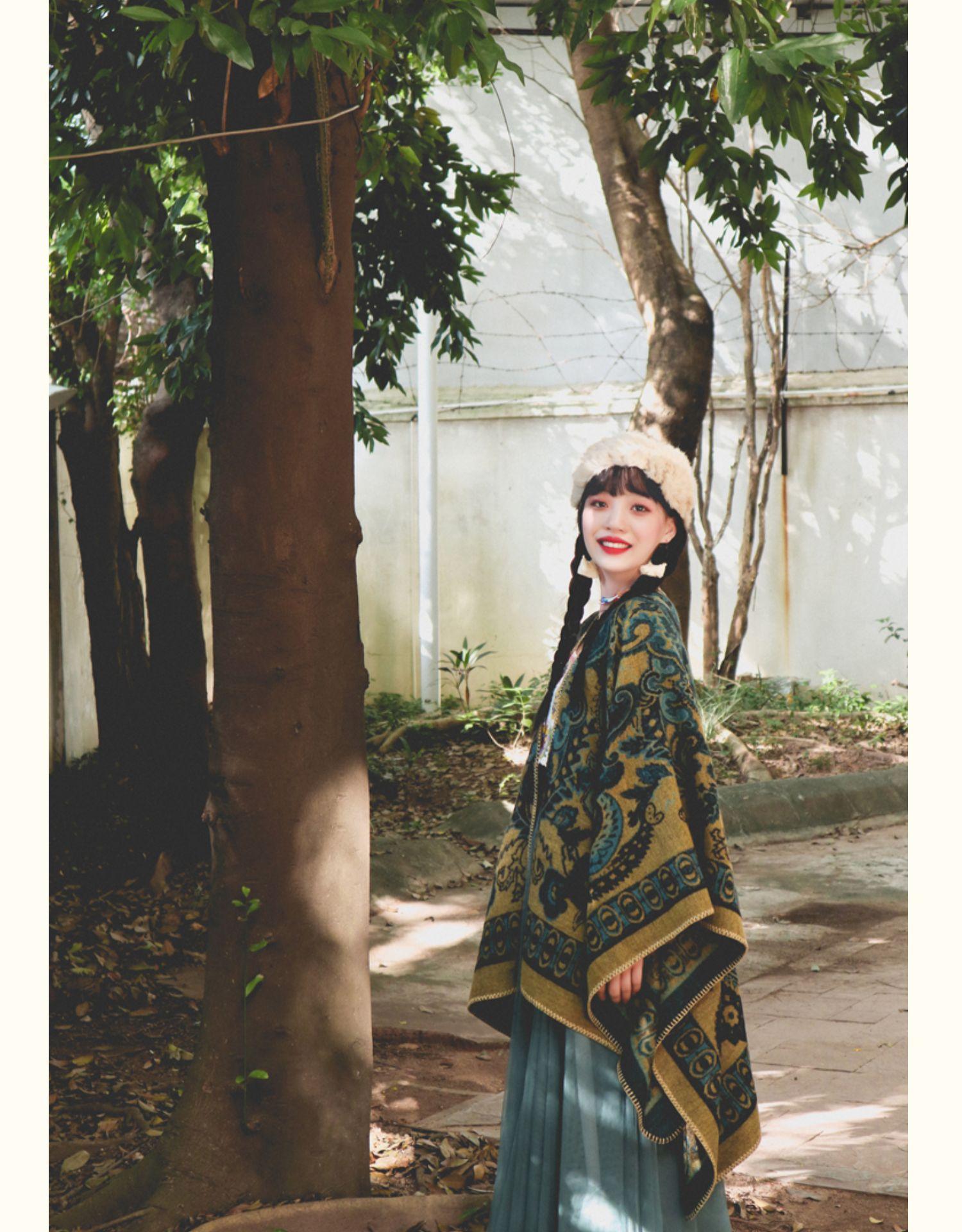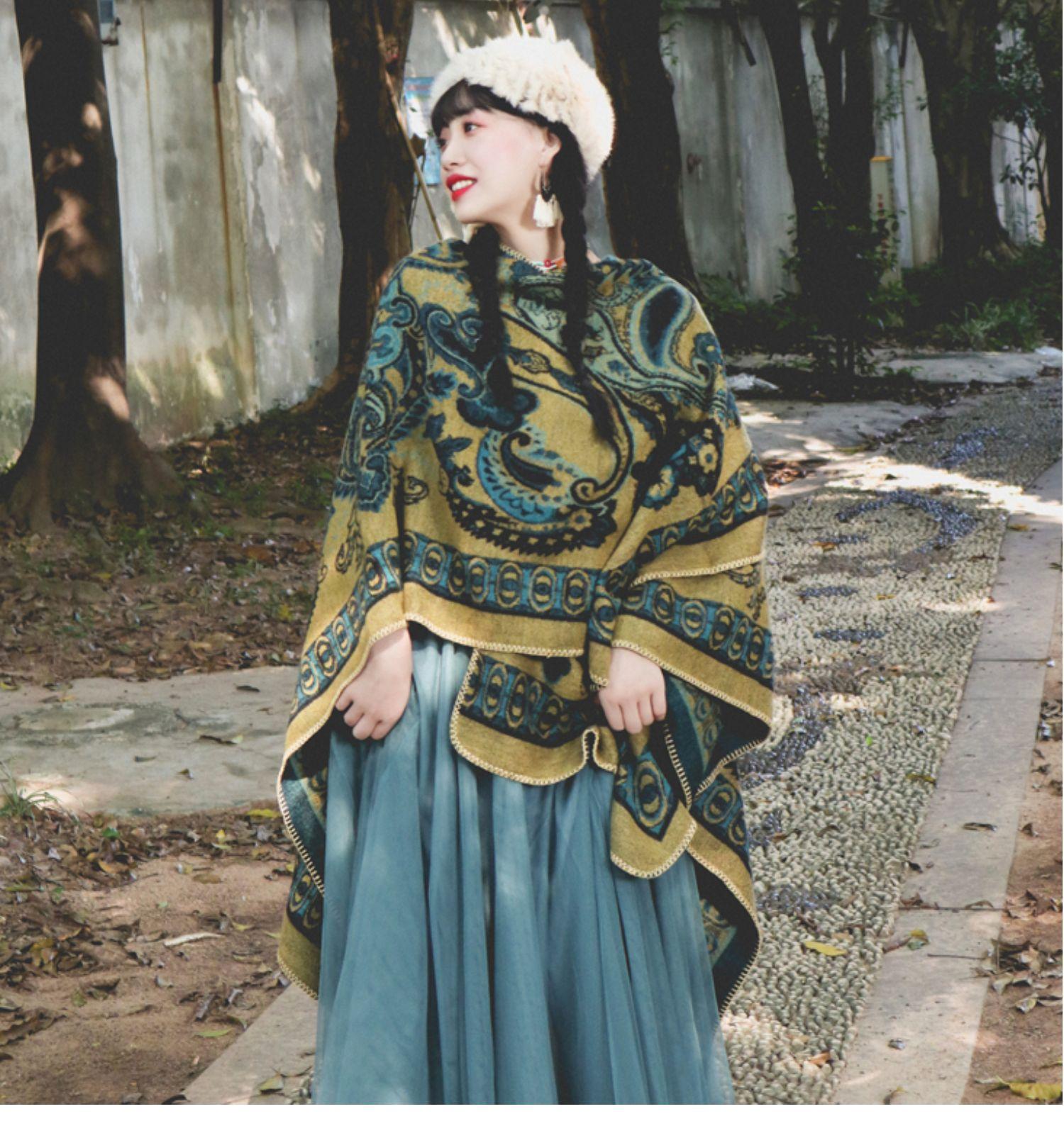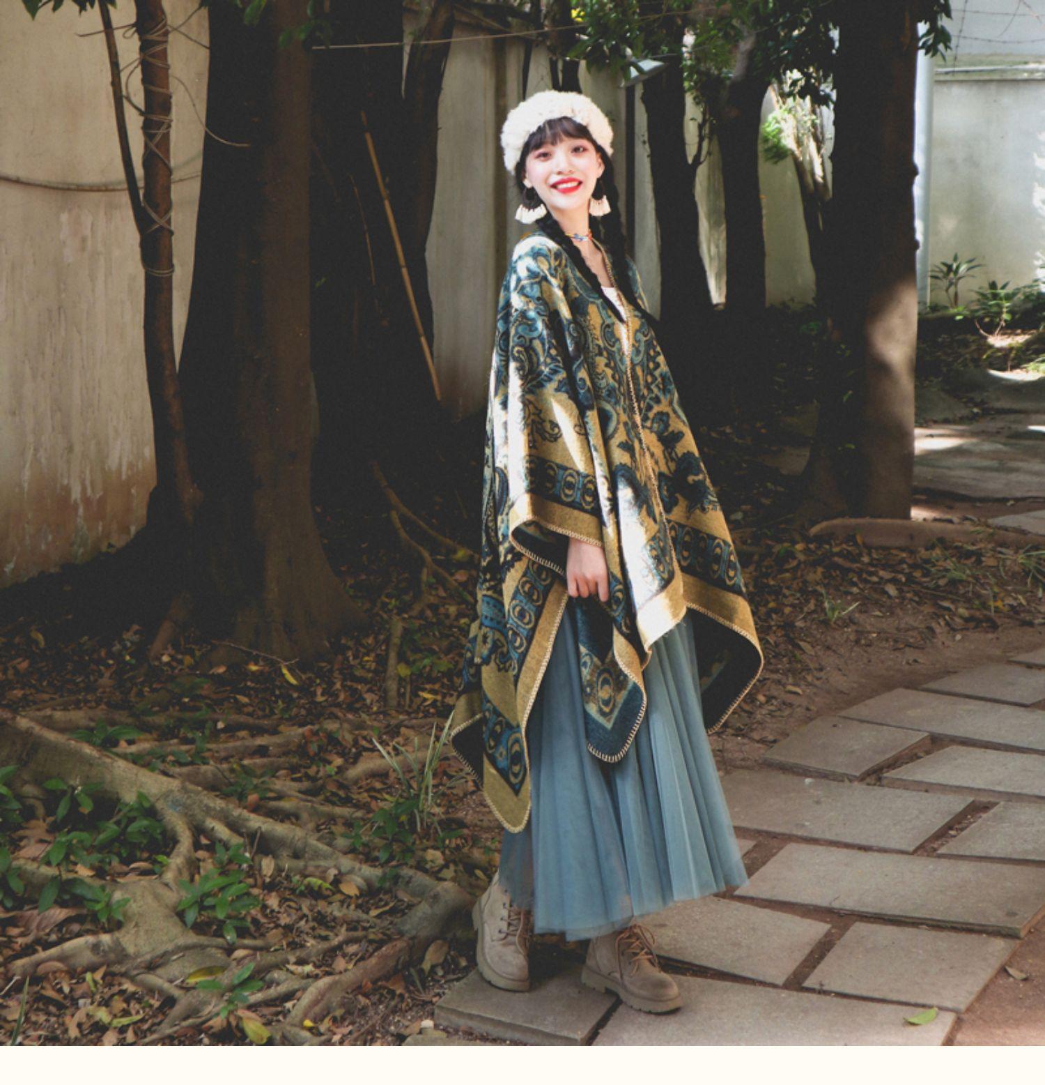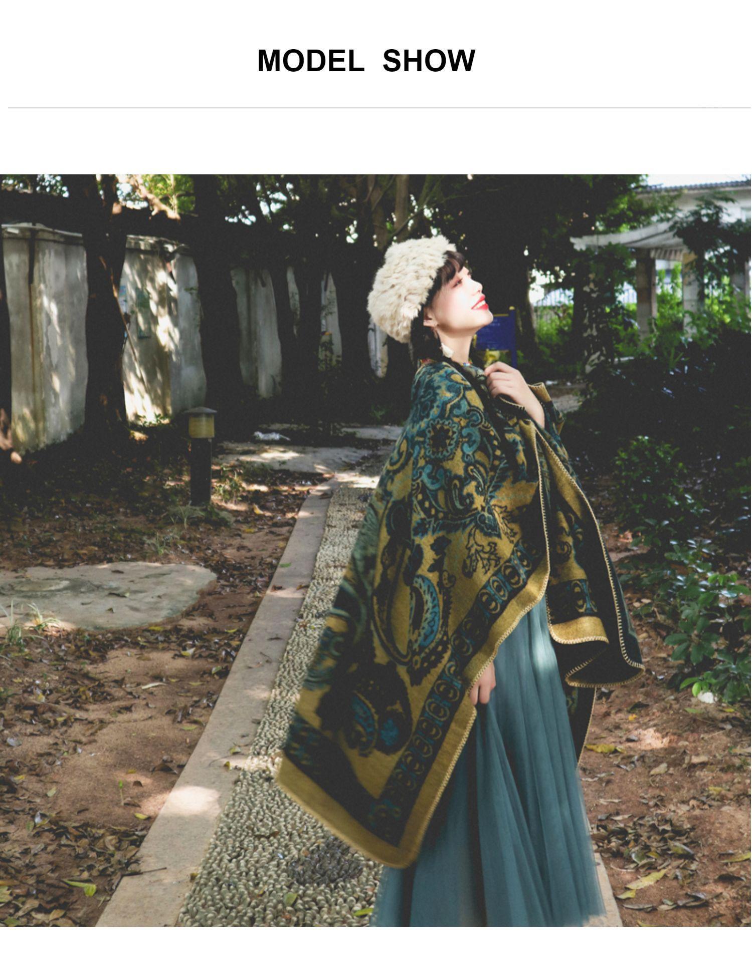 Otoño e invierno 2024 nuevo patrón vintage estilo étnico vacaciones chal cálido capa bufanda viaje Xizang Yunnan