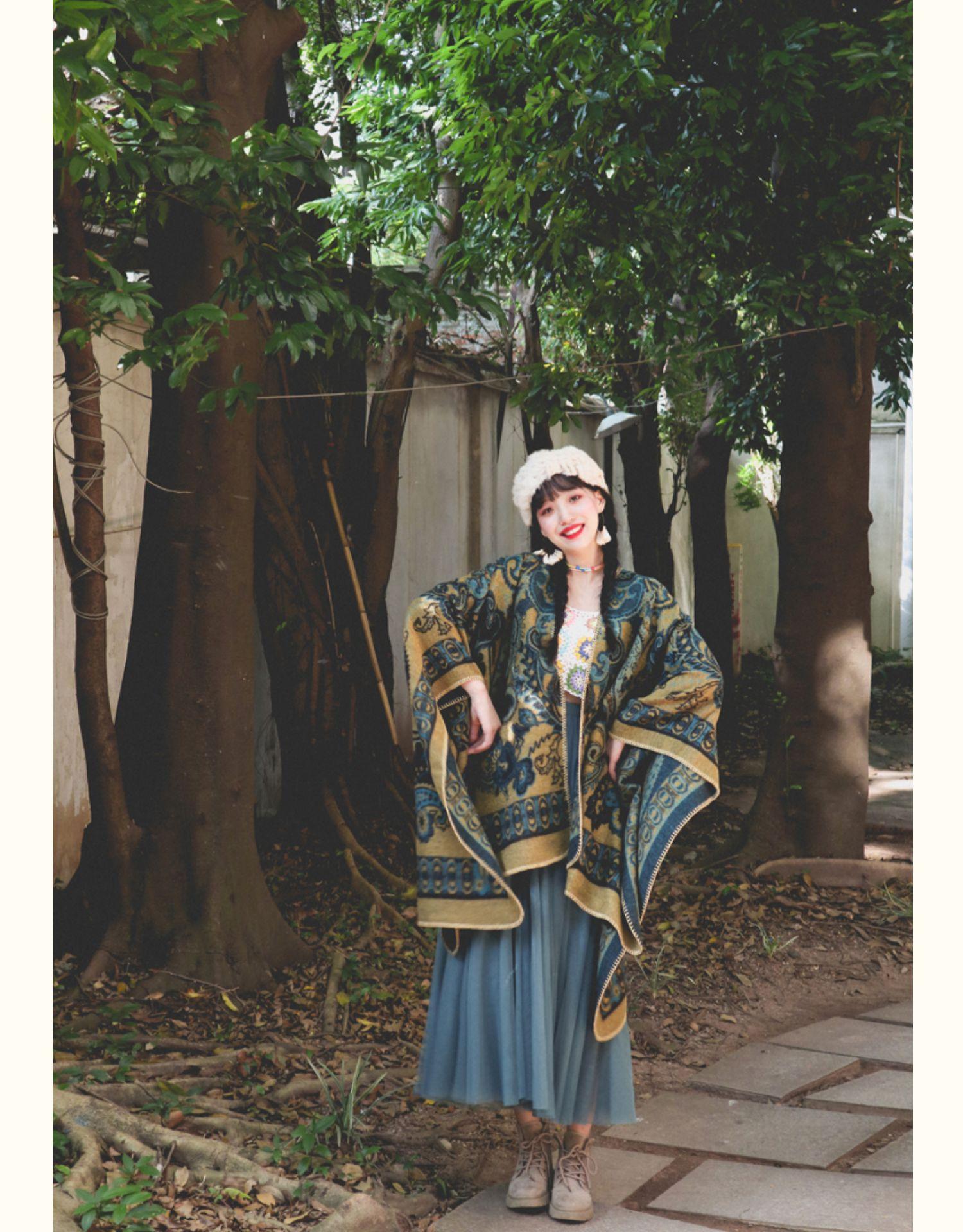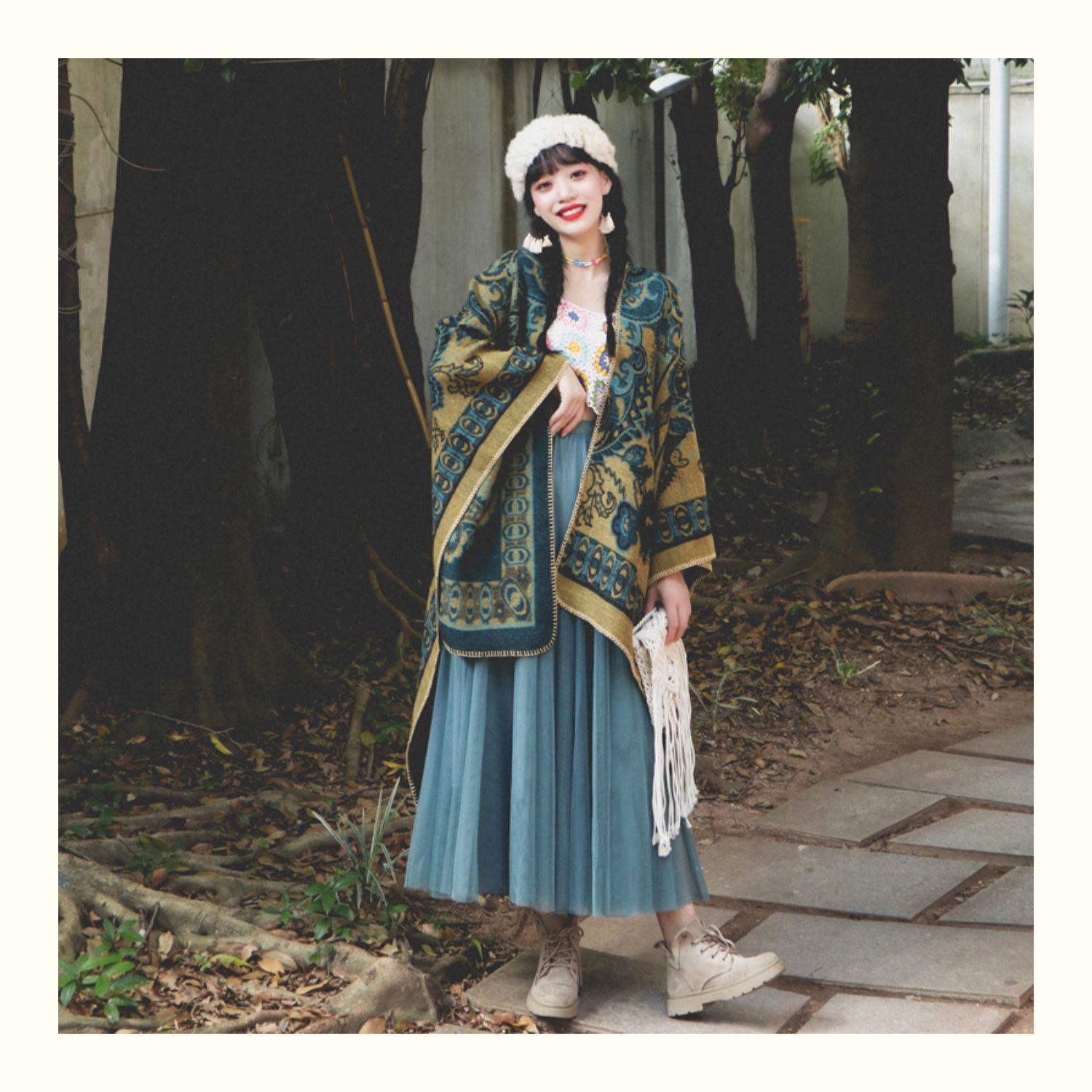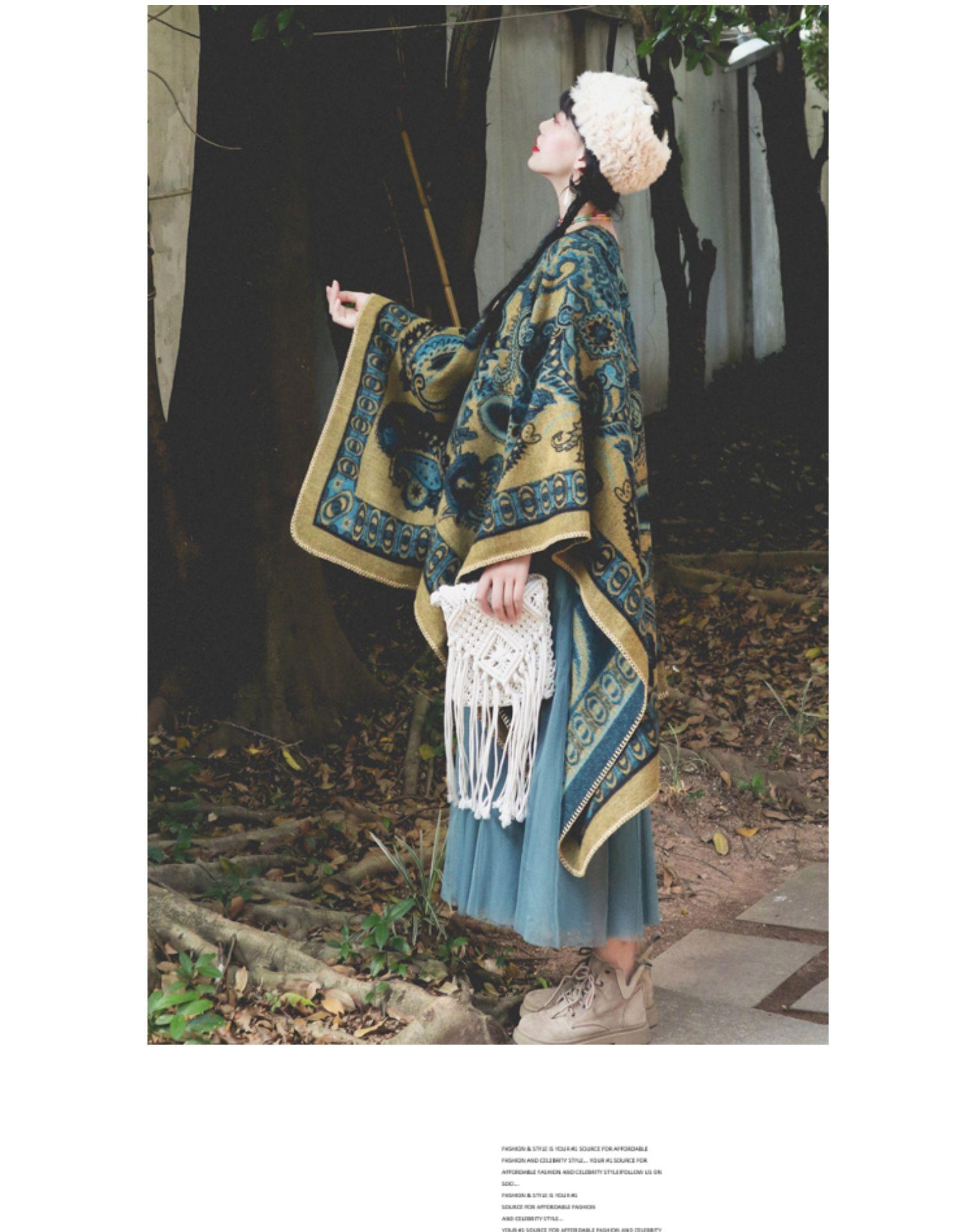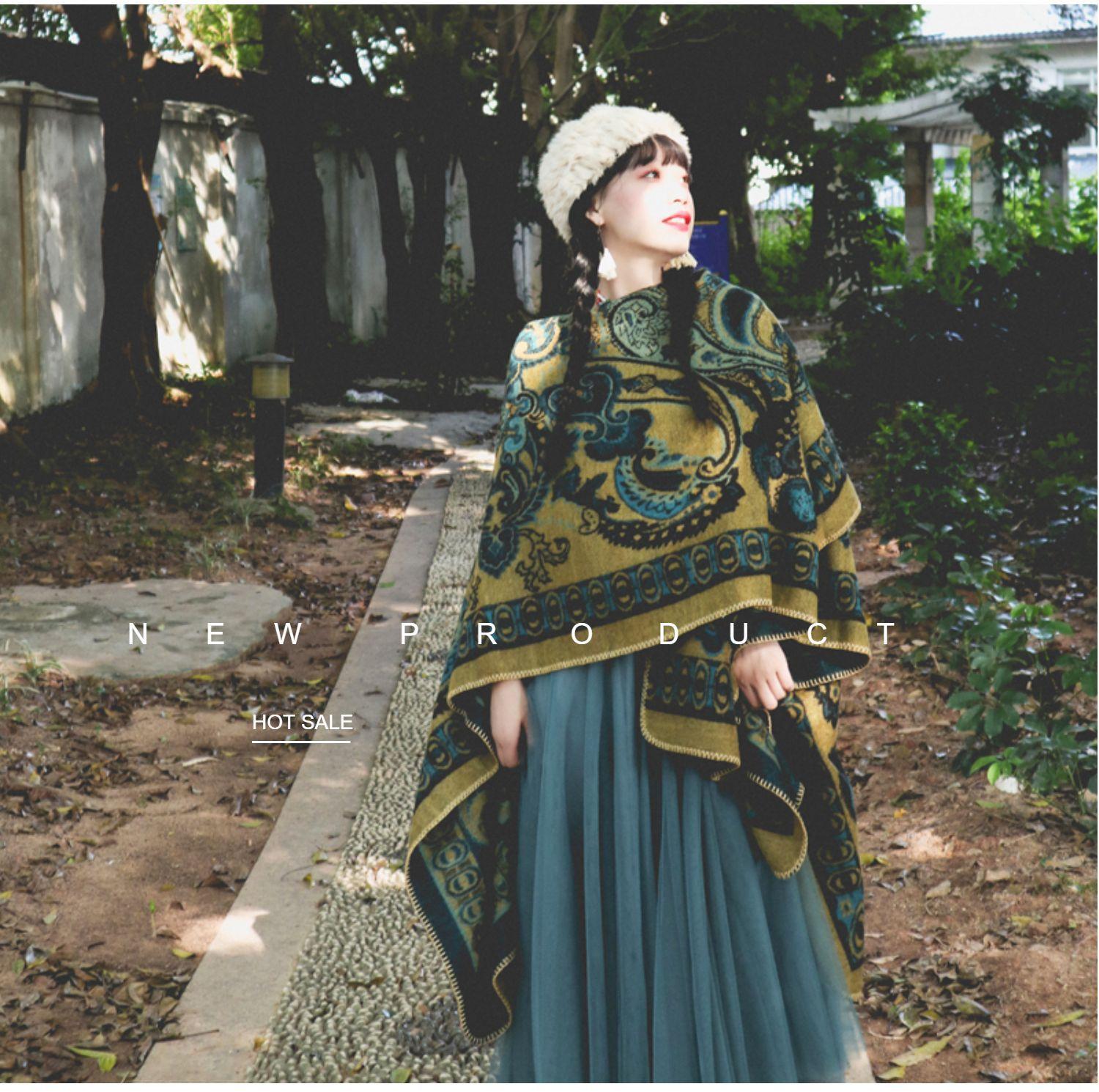 Otoño e invierno 2024 nuevo patrón vintage estilo étnico vacaciones chal cálido capa bufanda viaje Xizang Yunnan