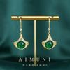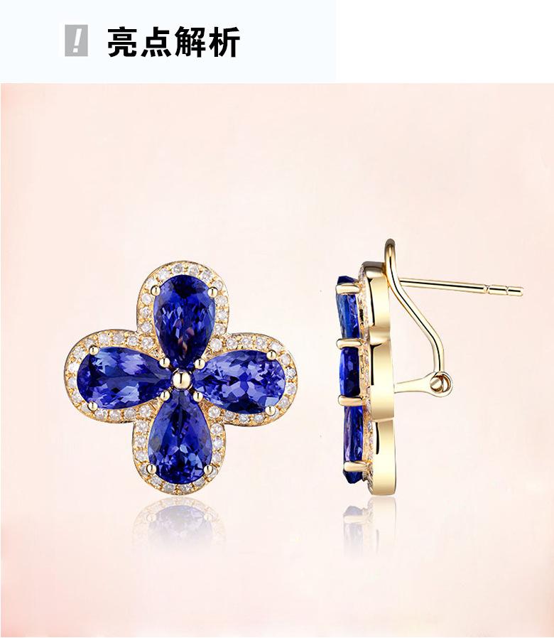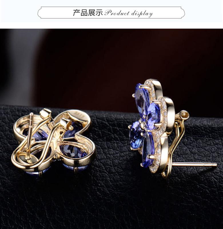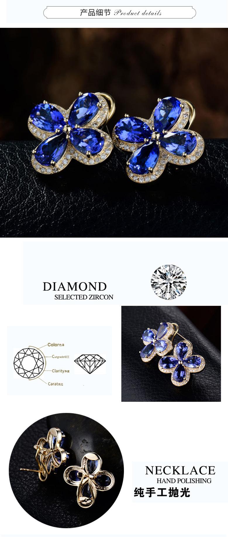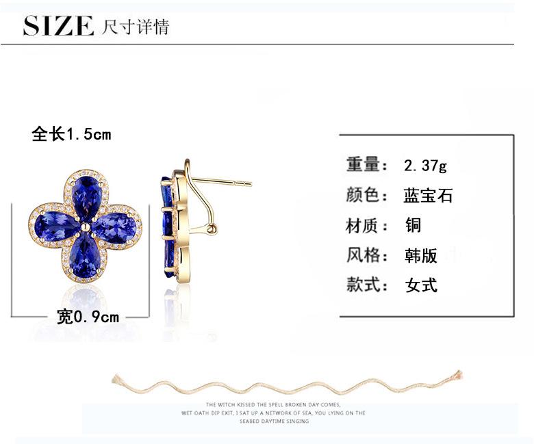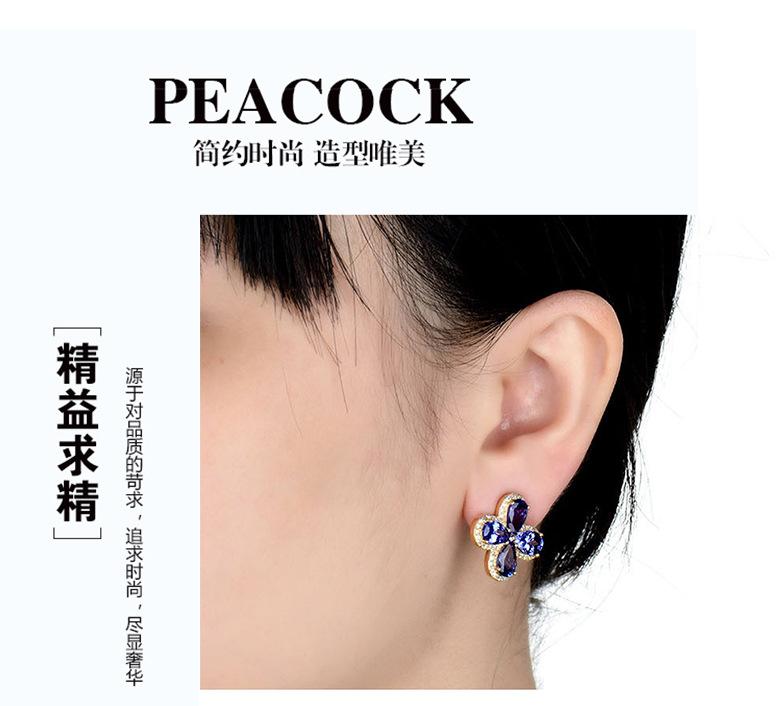 Aretes de trébol de cuatro hojas de zafiro coreano de la serie Zhenrong Caibao, aretes de oro rosa de 18 quilates, joyería de plata al por mayor
