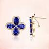 Sapphire Four-leaf Clover Stud Earrings (Copper Plated with Gold)