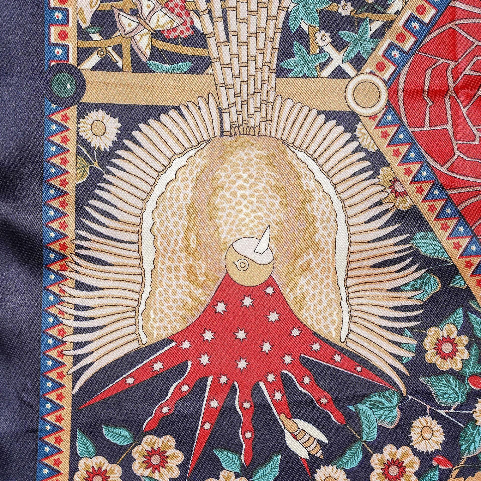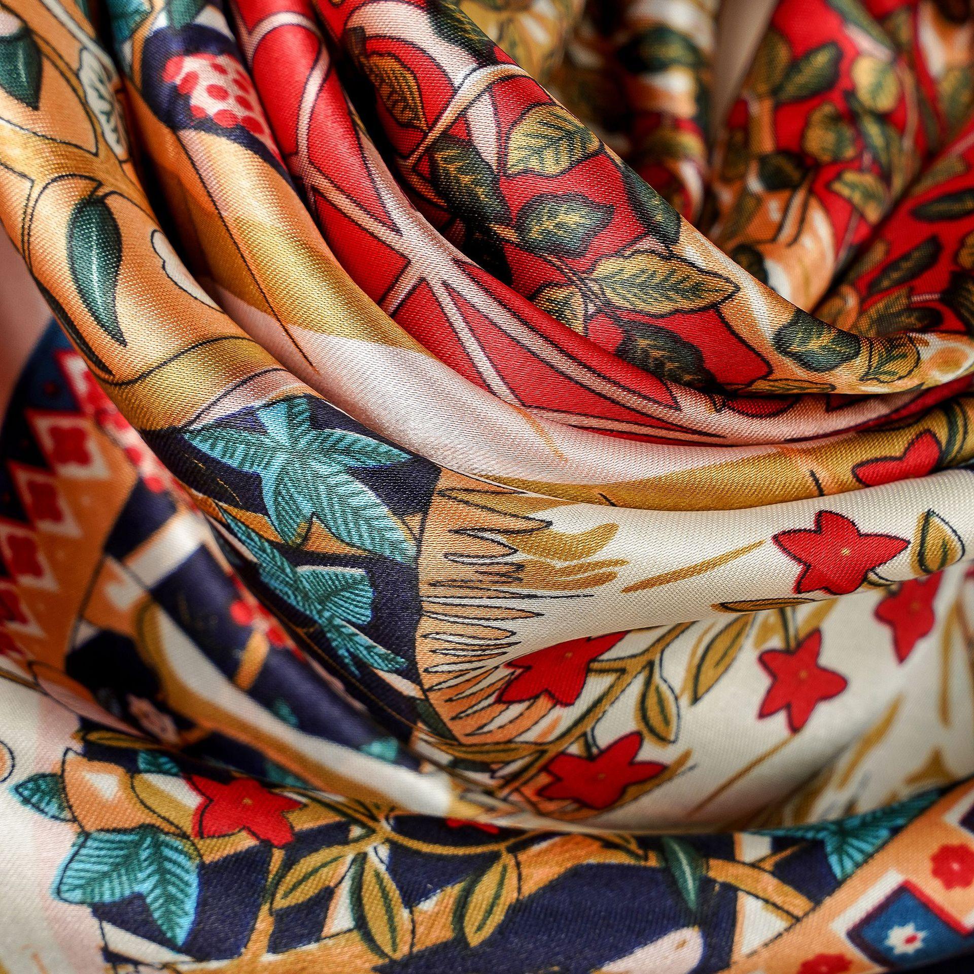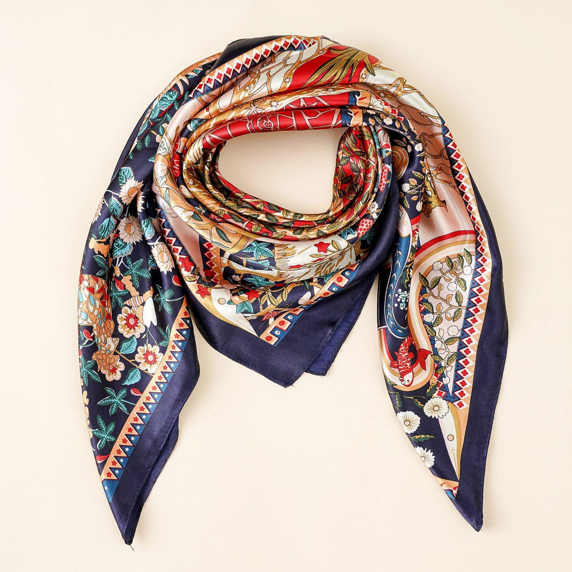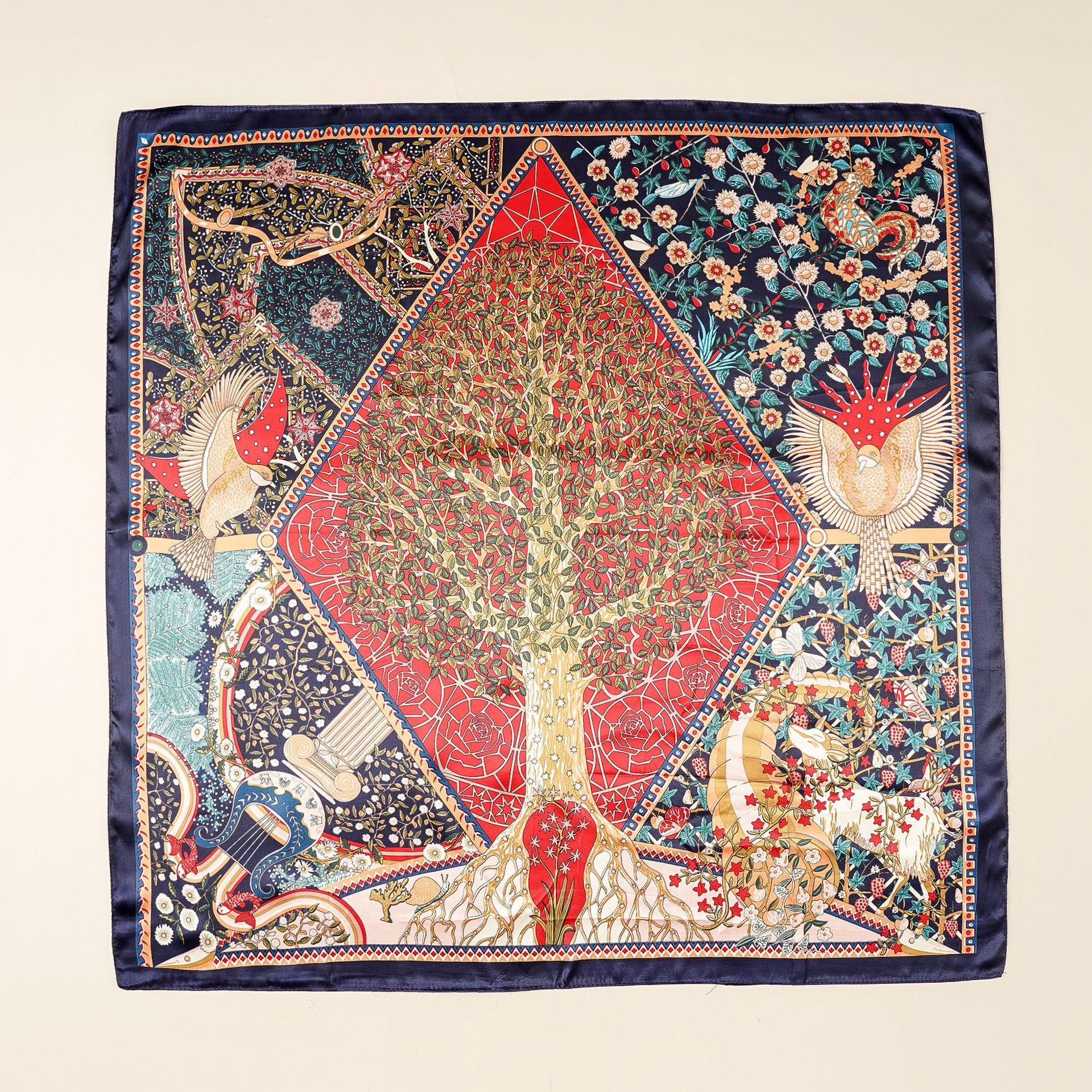 Pañuelo cuadrado grande de seda artificial 90 pañuelo de seda estilo étnico vintage figura patrón árbol grande bufanda de moda chal de doble uso