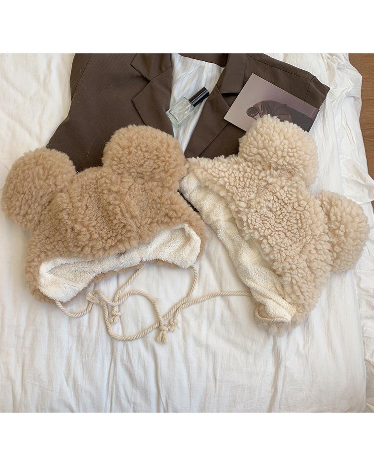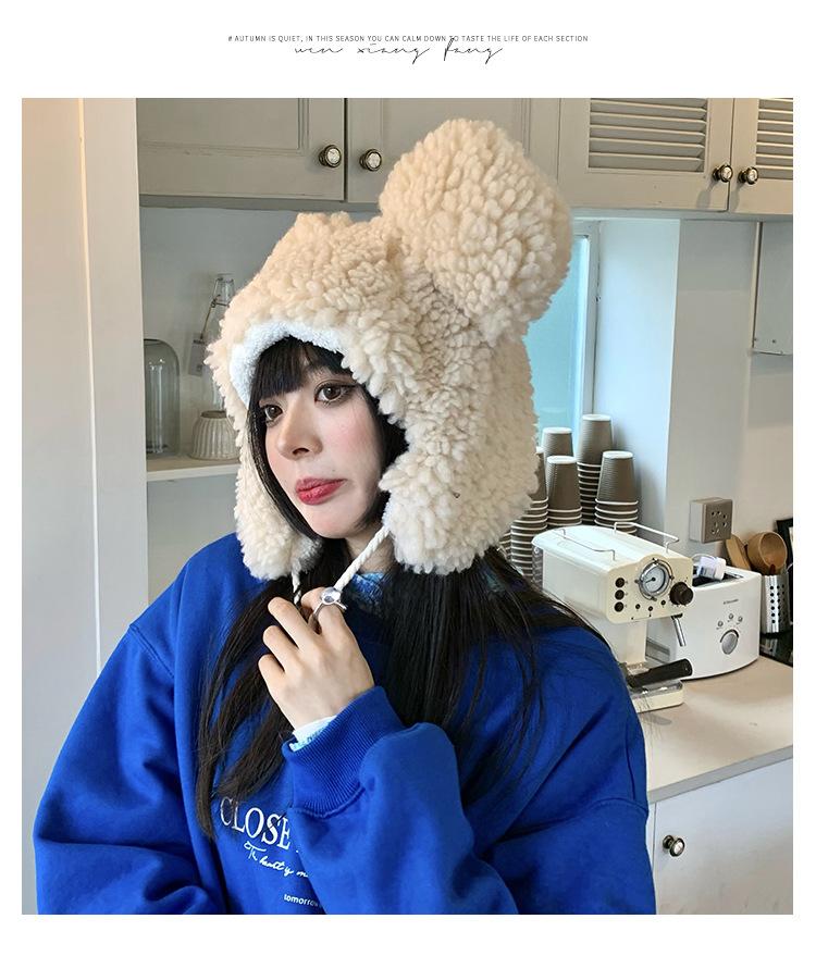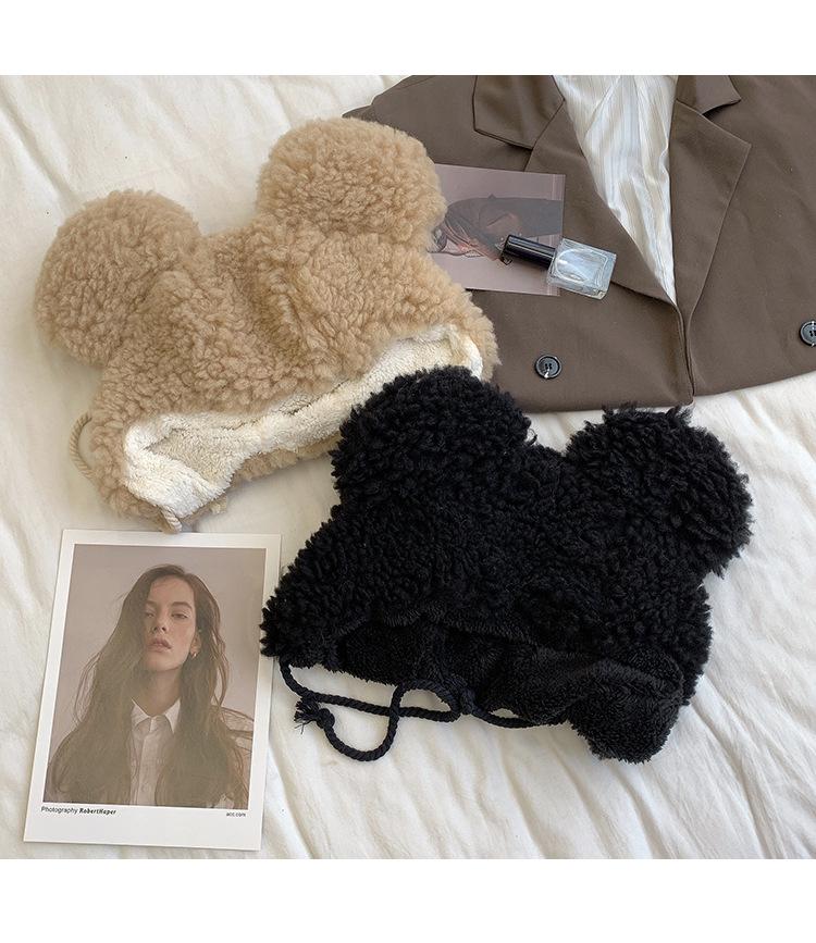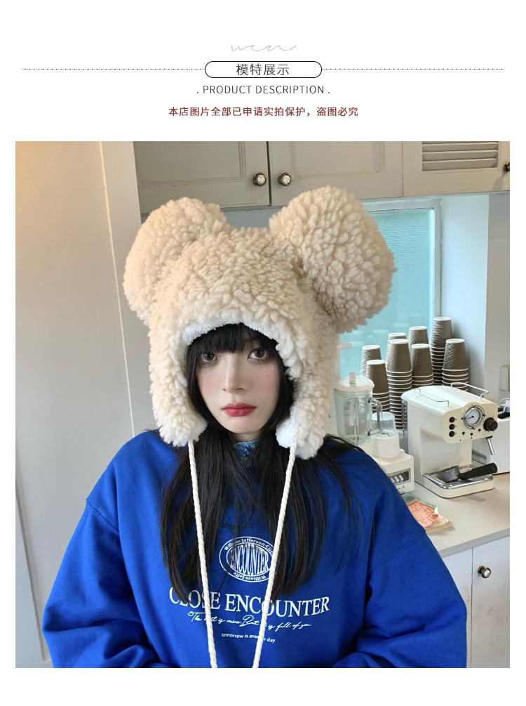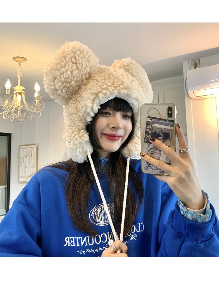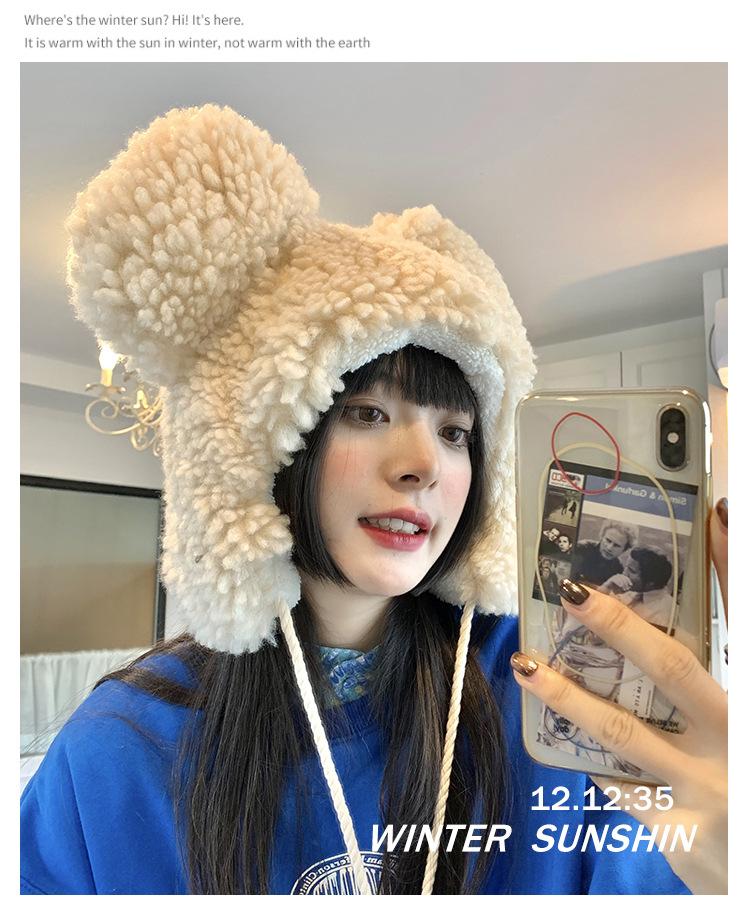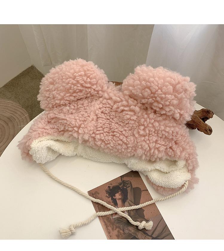 Invierno a prueba de frío cálido oreja de oso protección para las orejas gorro Lei Feng para mujer nuevo felpa de cordero oreja lindo felpa marea
