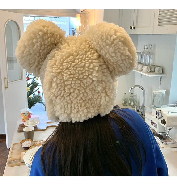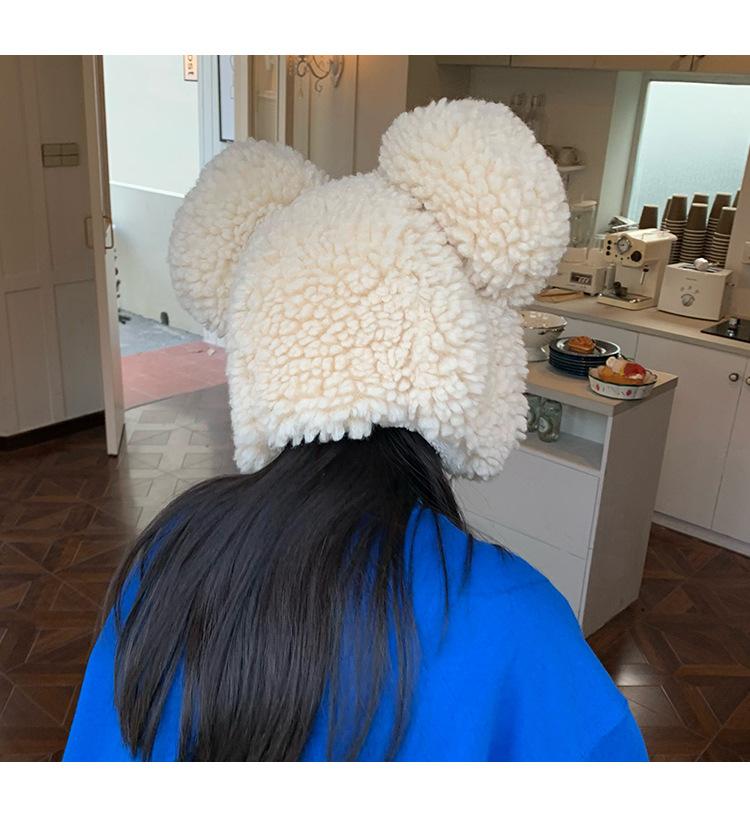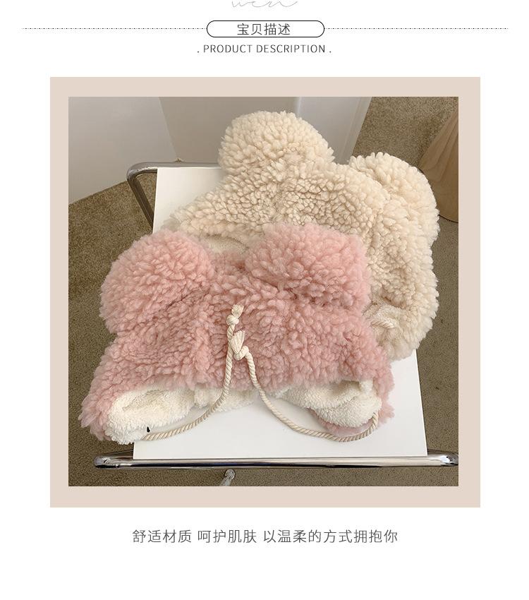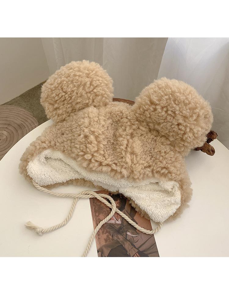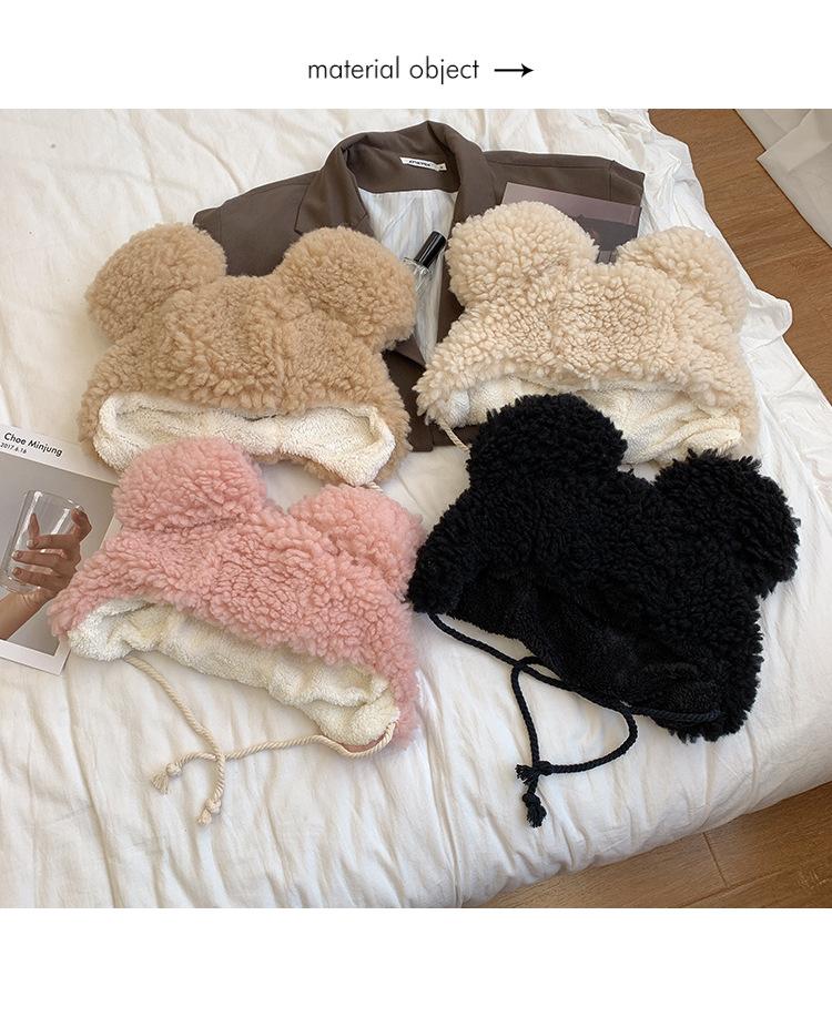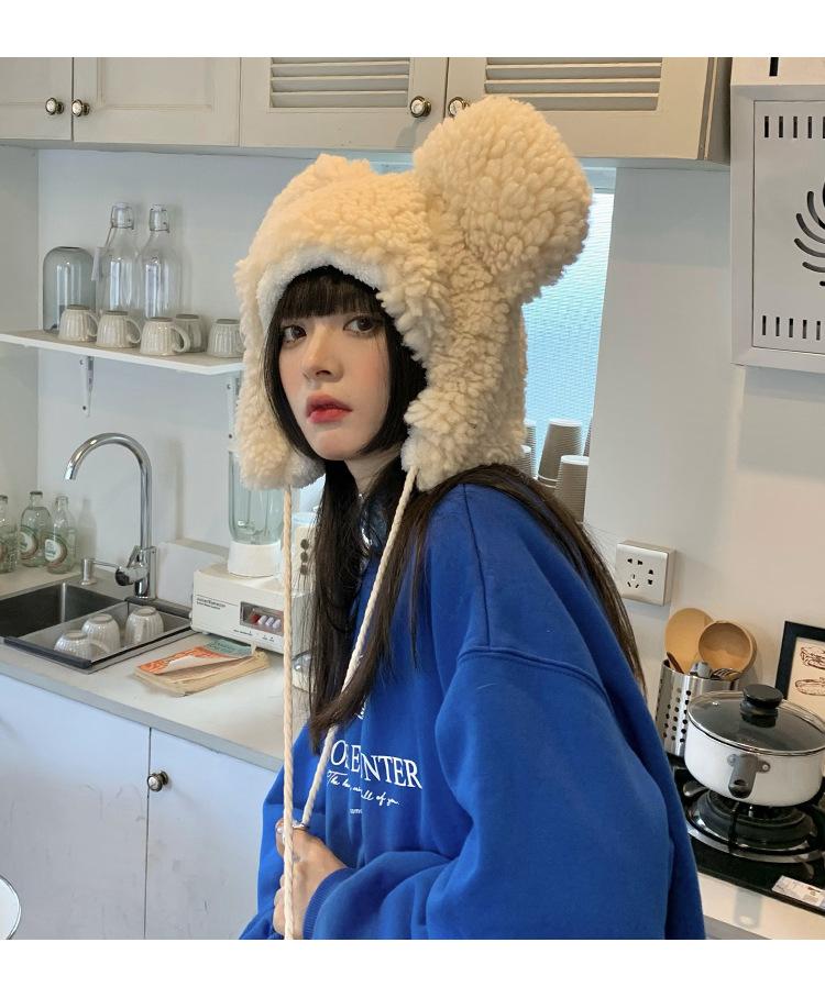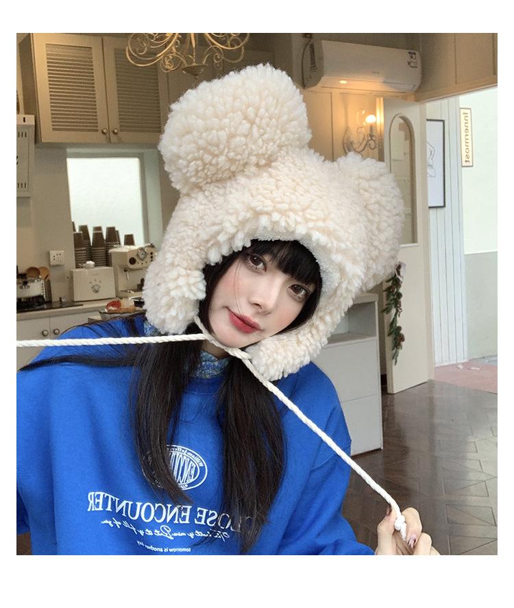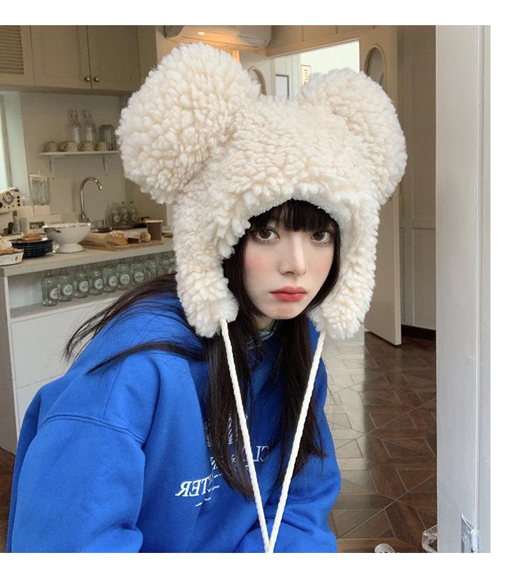 Invierno a prueba de frío cálido oreja de oso protección para las orejas gorro Lei Feng para mujer nuevo felpa de cordero oreja lindo felpa marea
