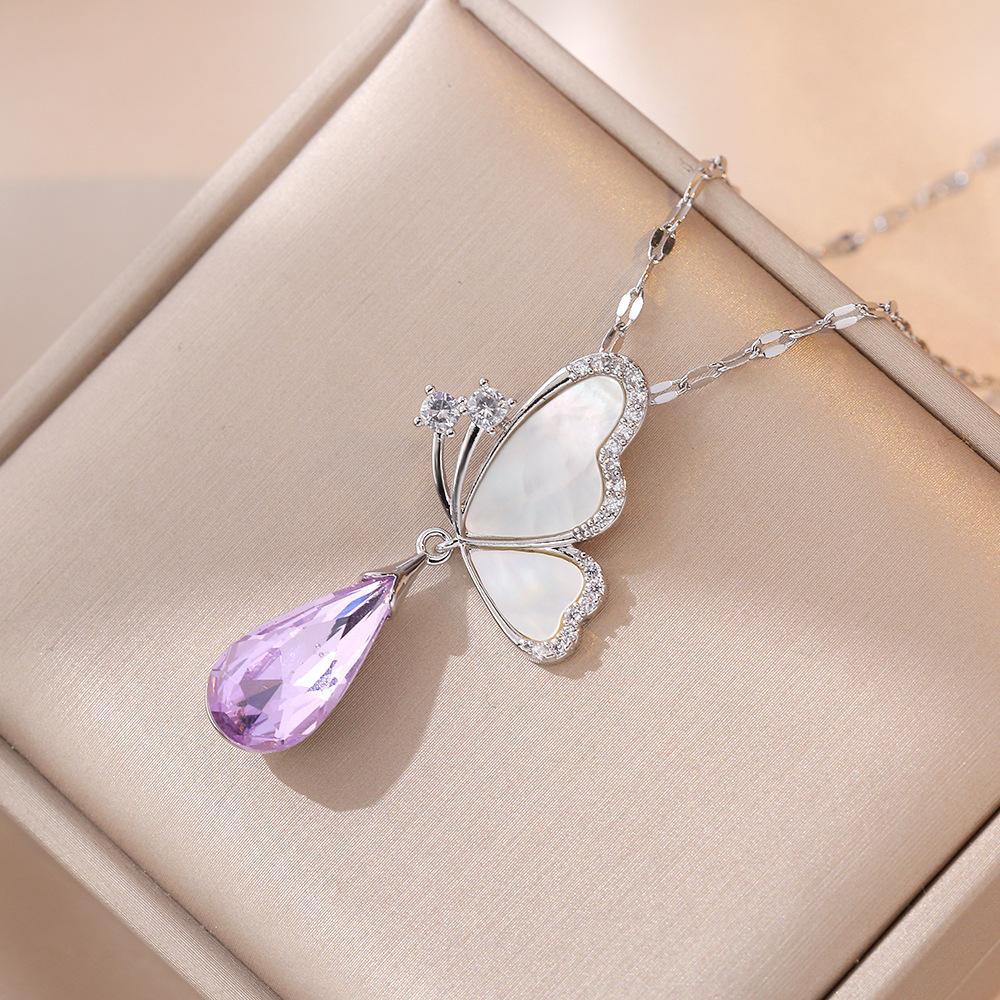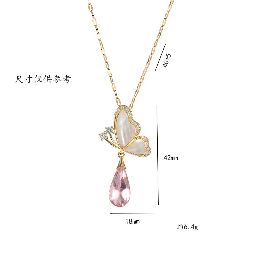 Collar para Mujer Moda Transfronteriza Mariposa Gota de Agua Colgante de Zircón Estilo Ins Diseño Nicho Joyería Cadena Clavicular