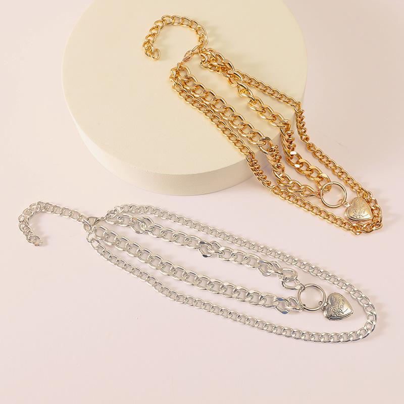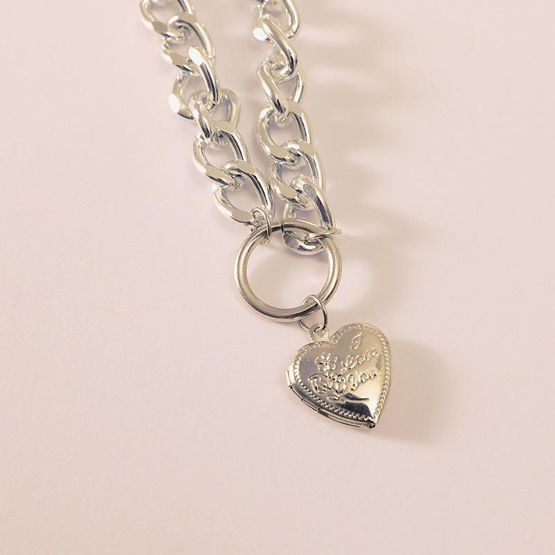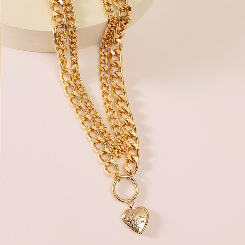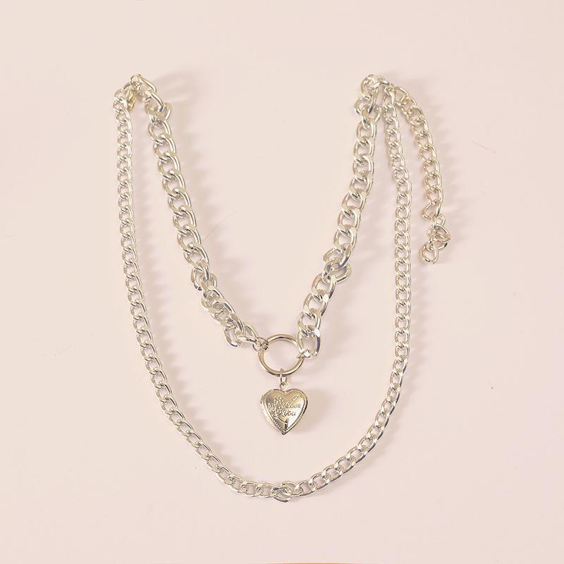 Joyería Transfronteriza Europea y Americana Collar con Colgante Creativo Abrible en Forma de Corazón para Mujer Collar Corto de Cadena Simple de Doble Capa Exagerado