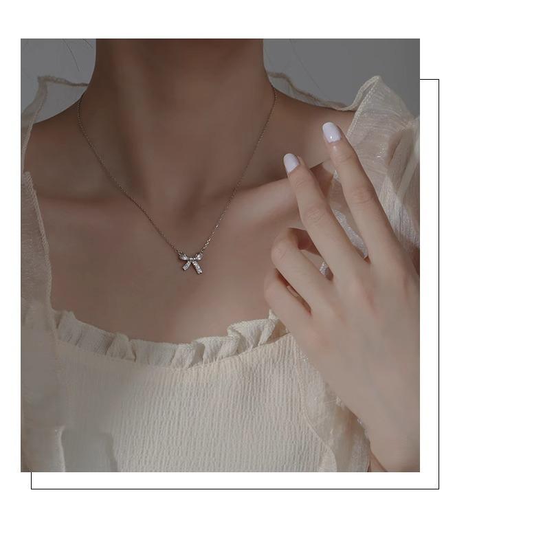 Collar de lazo de plata para mujer, diseño de nicho de verano 2024, nuevo, ligero, de lujo, de alta gama, con cadena de clavícula explosiva.