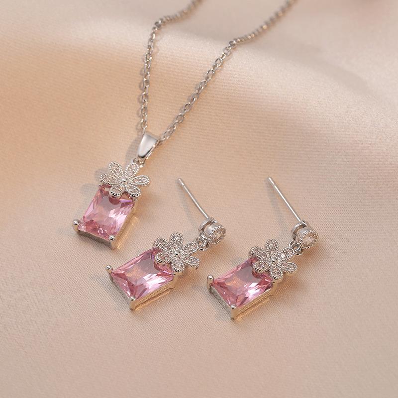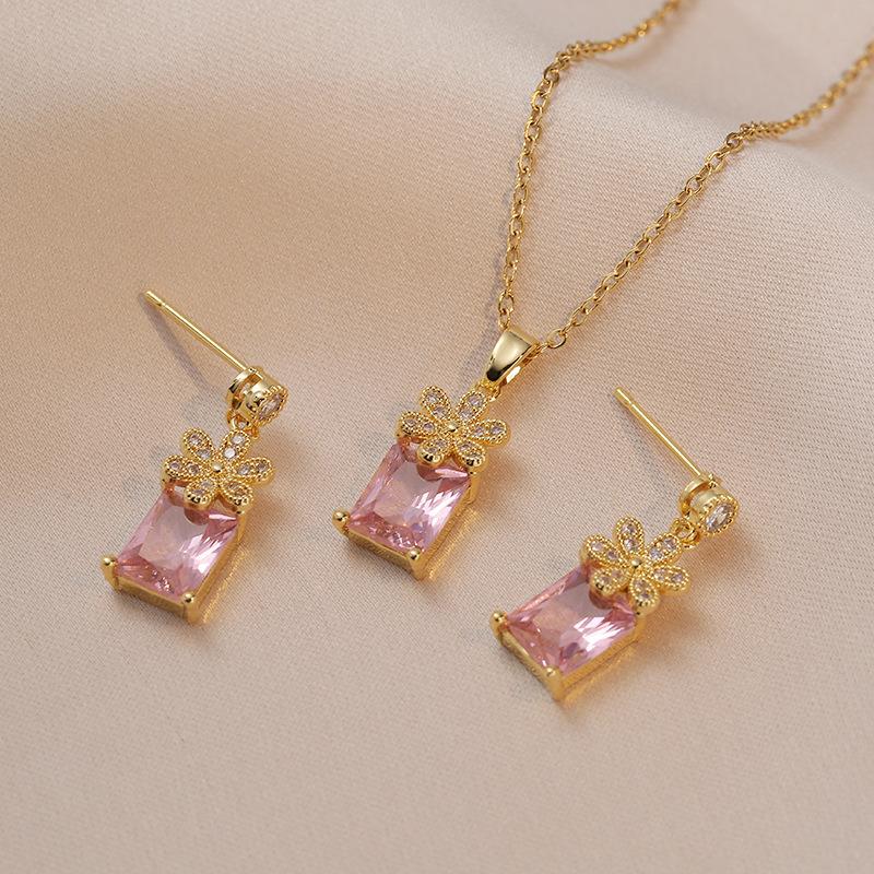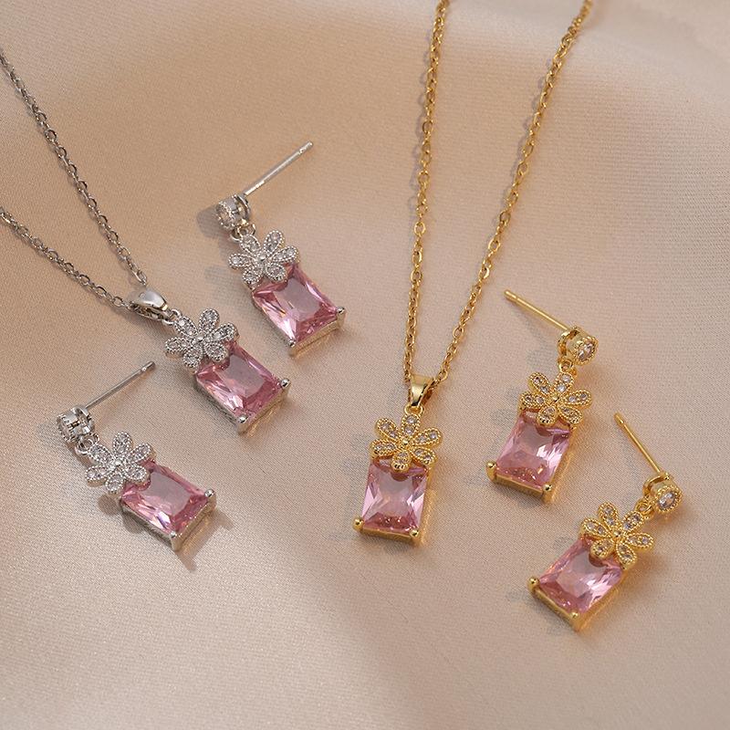 Gold necklace flower zircon DX1009, Silver necklace flower zircon DX1009, Gold stud earrings flower zircon DX1...