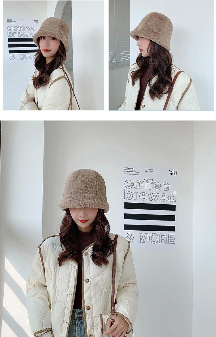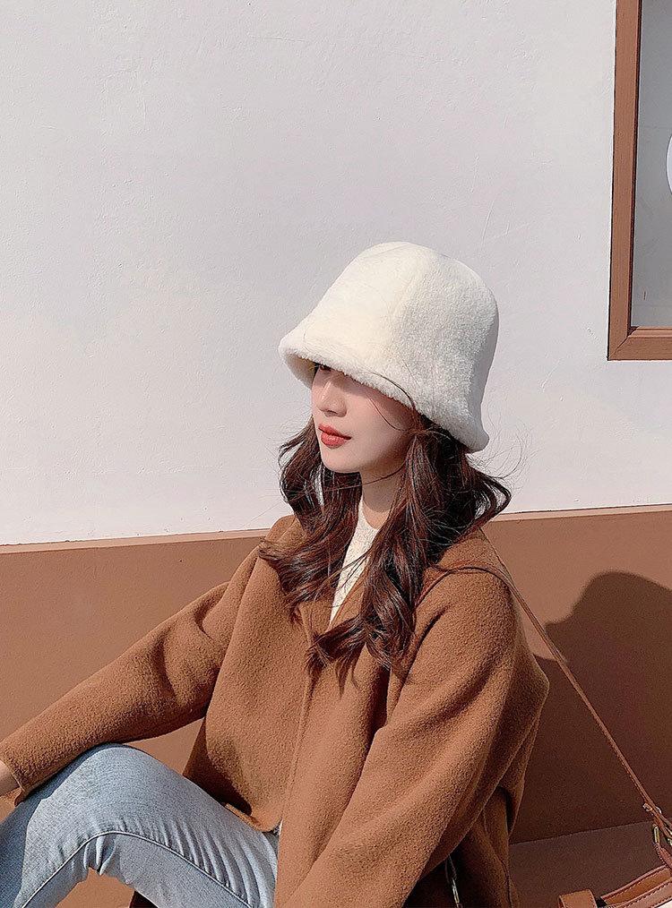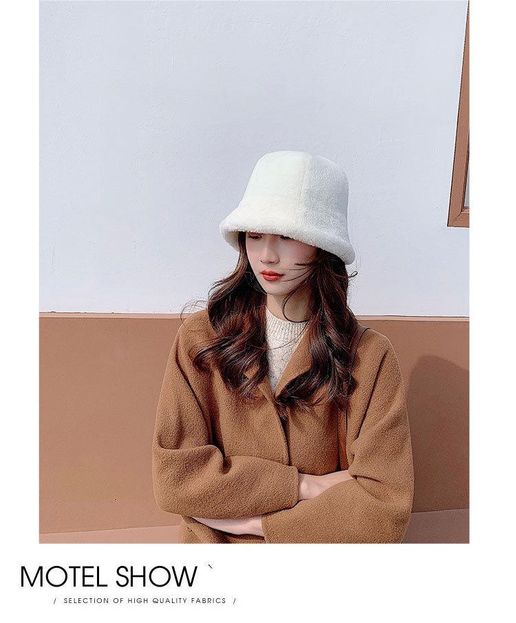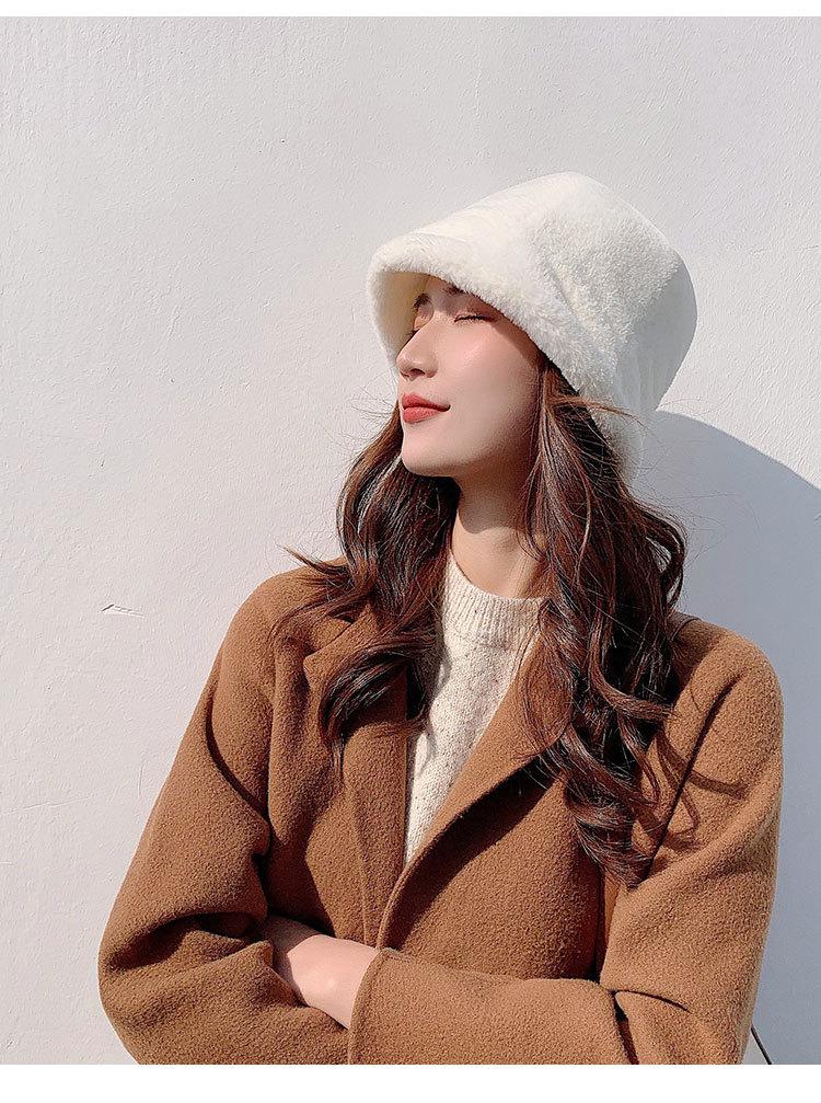 Sombrero de Cubo para Mujer Otoño e Invierno, Color Sólido, Cálido, Estilo Coreano, Estilo Japonés, Casual y Versátil para Adultos