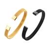 Pulsera tejida transfronteriza europea y americana tipo C de acero inoxidable pulsera femenina brazalete pulsera de acero de titanio en stock