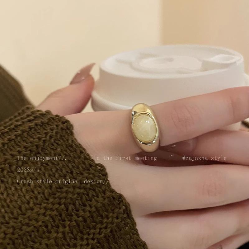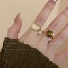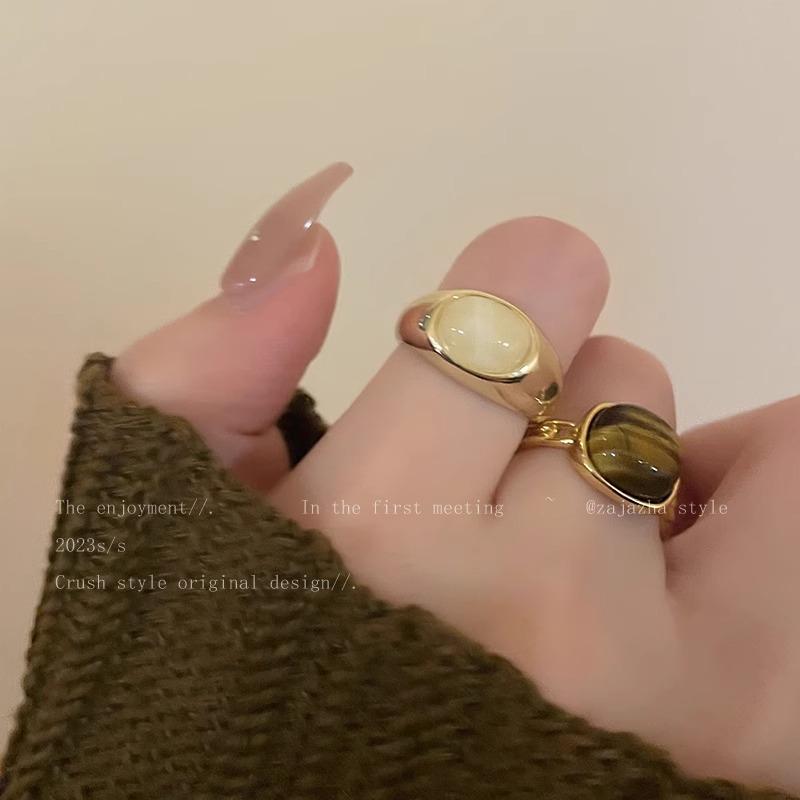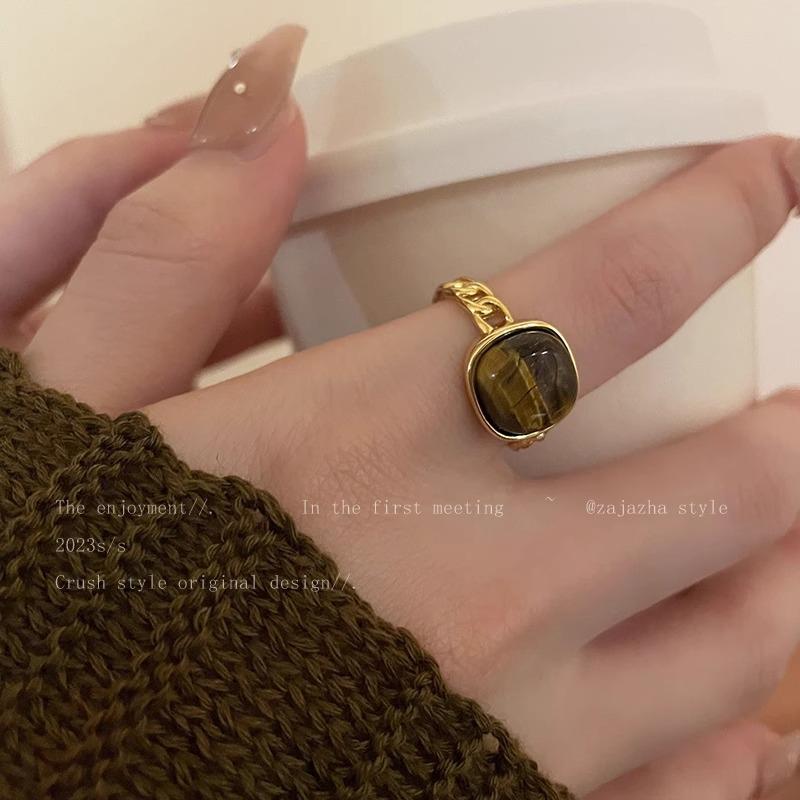 Anillo abierto de piedra natural para niñas, temperamento retro, diseño de nicho, anillo para el dedo índice, celebridad de internet, moda, personalidad, anillo para novias