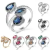 Anillo de Joyería de Venta Caliente Transfronterizo de Aliexpress al Por Mayor Joyería de Mano de Moda Zircón Azul Zafiro Gota de Agua Anillo Abierto de Cobre para Mujer