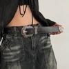 Cinturón de Mujer Europeo y Americano Transfronterizo Nuevo Europeo y Americano Negro Simple Imitación Cuero Sello de Cintura Correa Decorativa Casual para Mujer en Stock