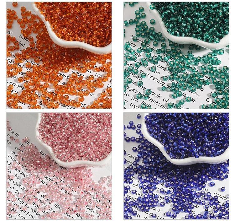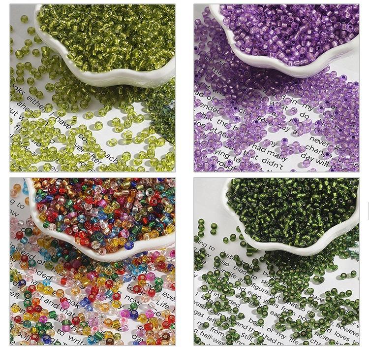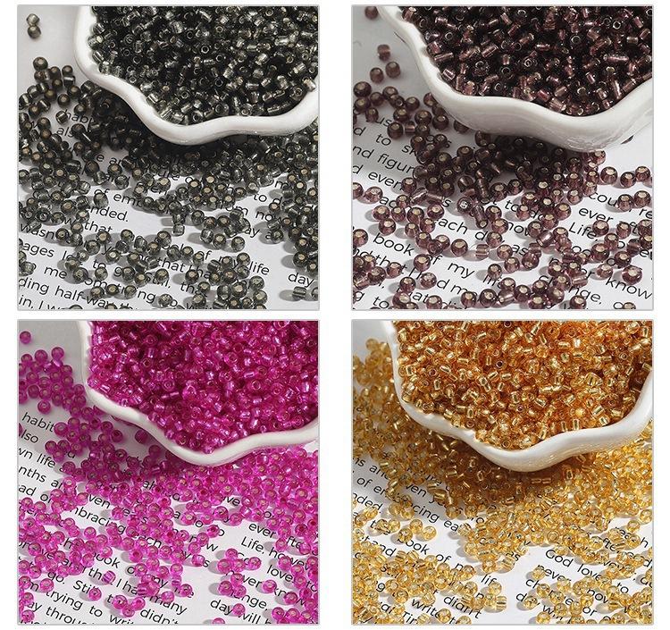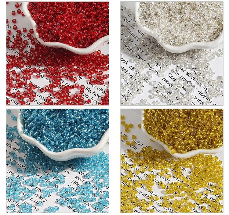 En stock, cuentas de arroz plateadas con relleno de vidrio de 2/3/4 mm, cuentas sueltas hechas a mano para punto de cruz, cuentas de arroz plateadas con relleno de bricolaje, venta al por mayor