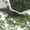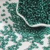 Glass silver-filled rice beads dark green