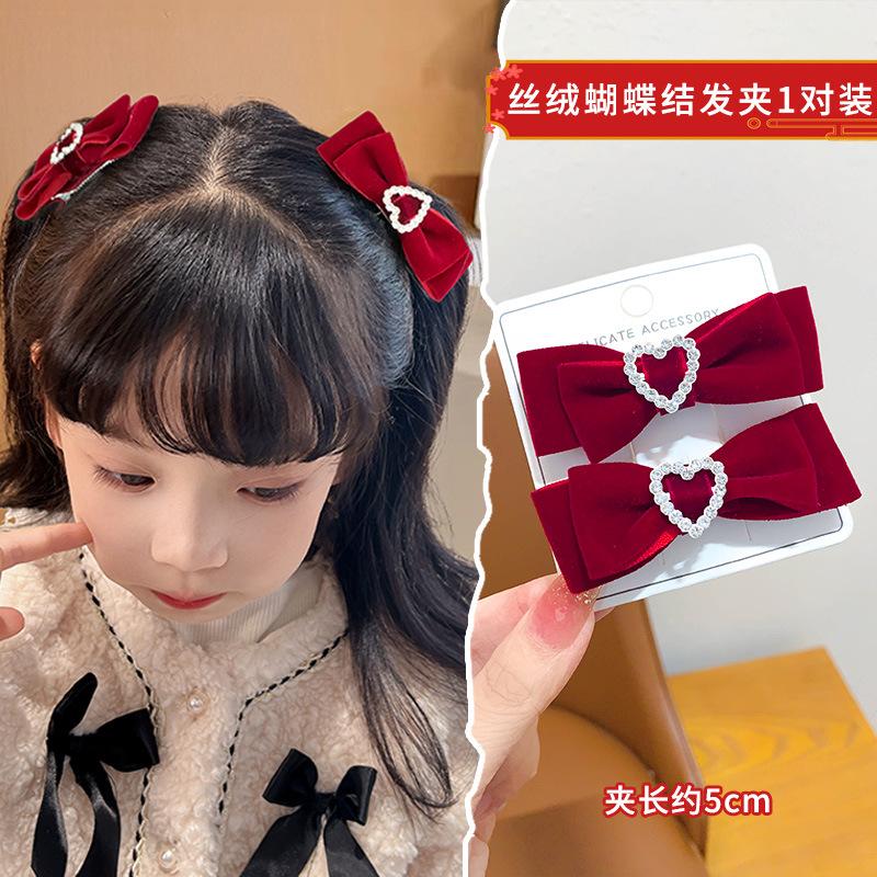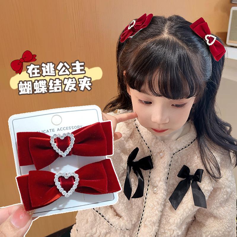 Rojo Terciopelo Accesorios para el Cabello con Lazo para Niños Clip de Corazón para Bebé Horquilla de Princesa Tocado para Niña Horquilla para Niñas