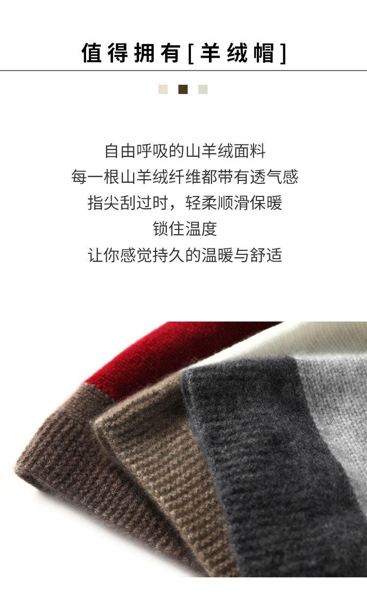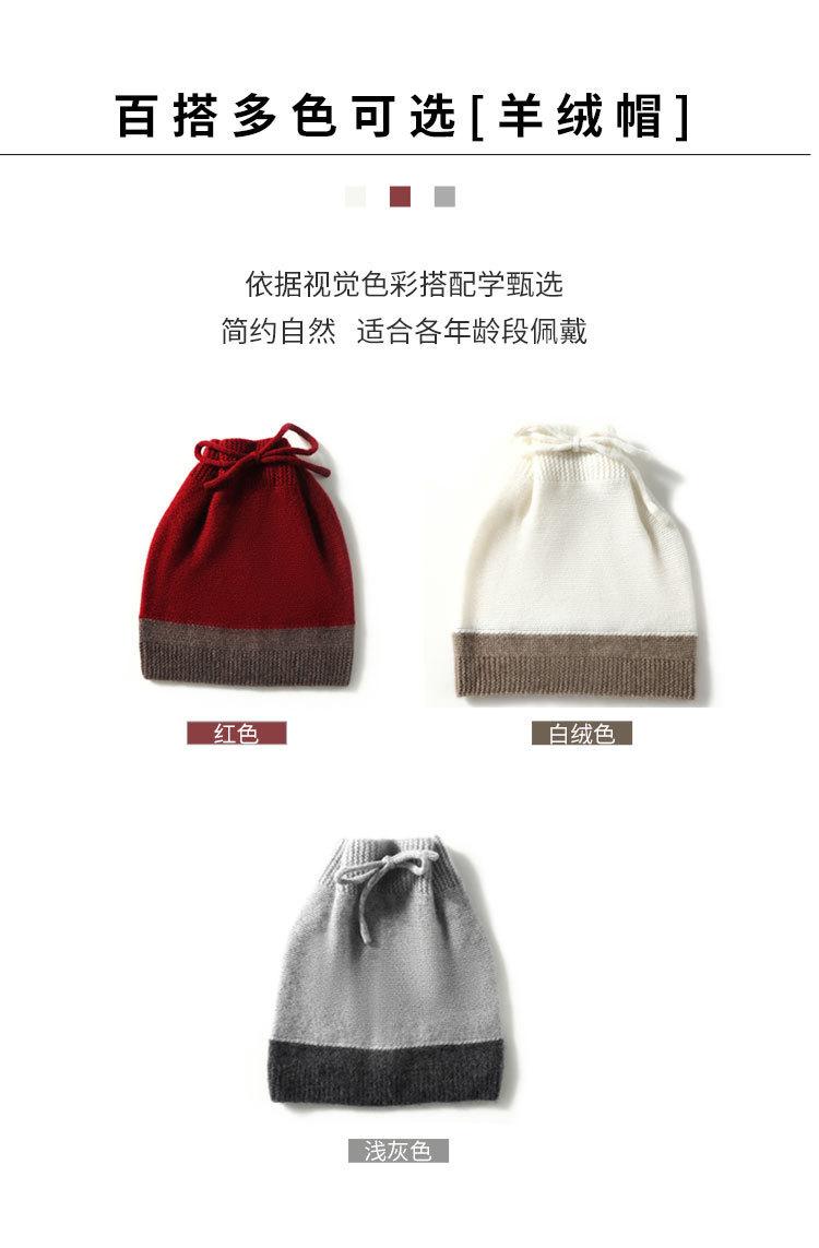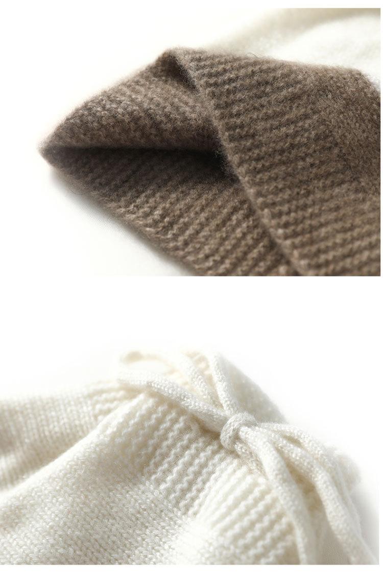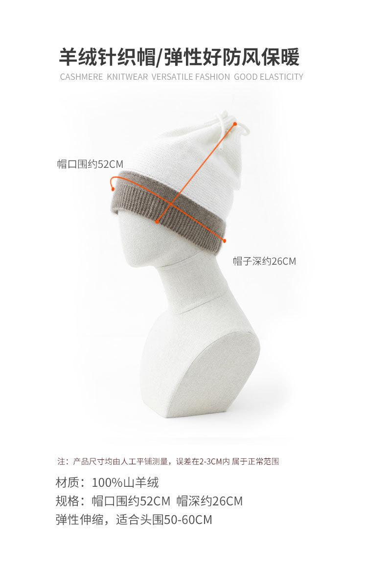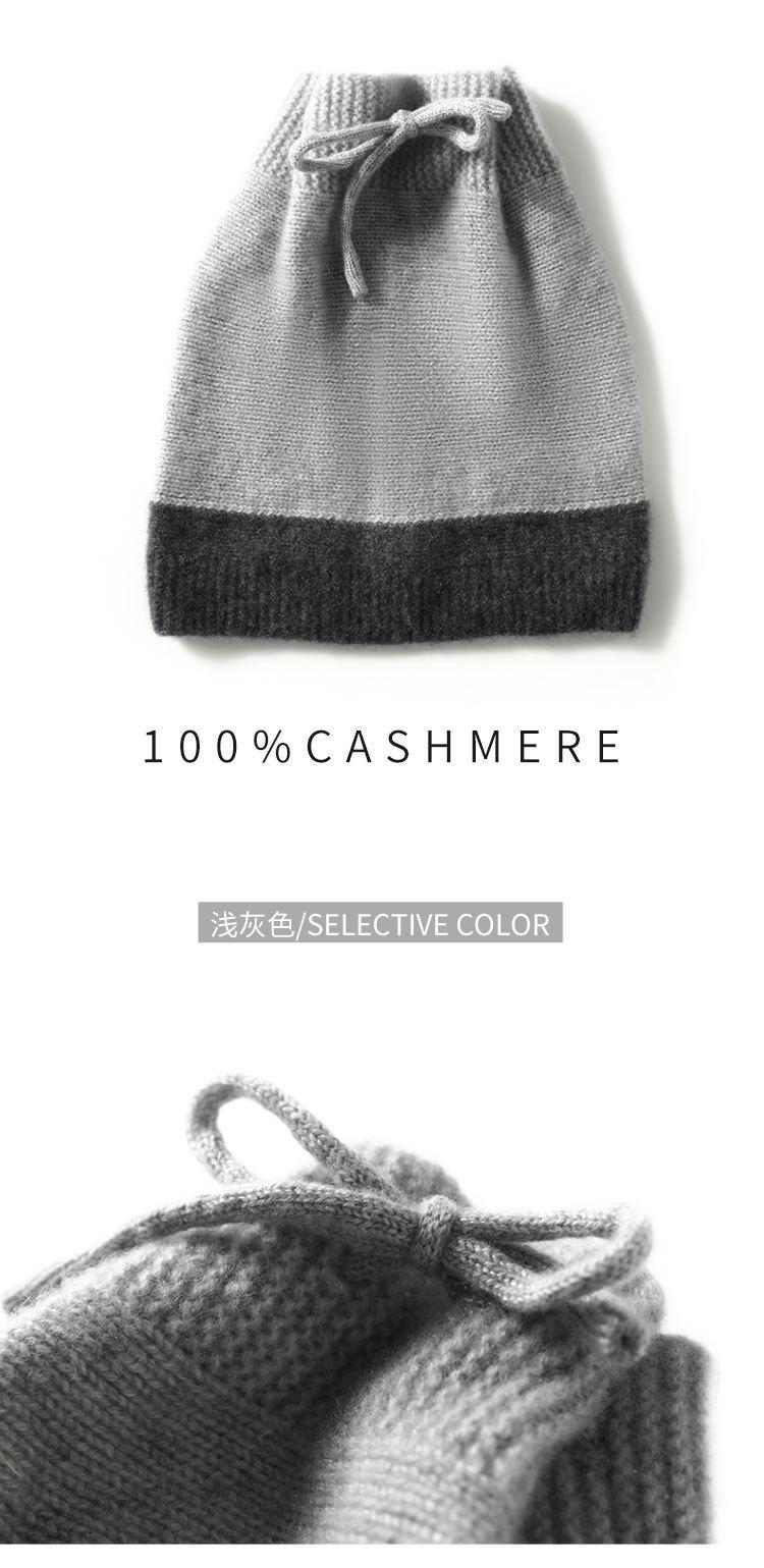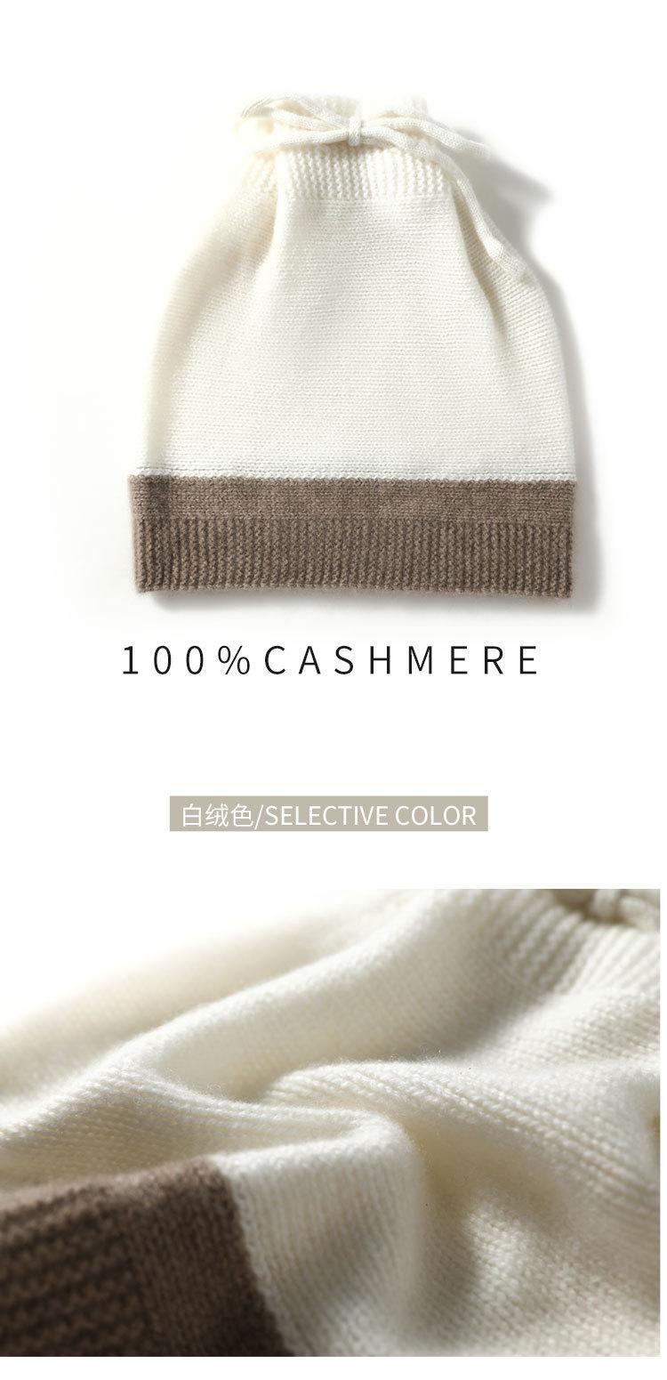 100% Cachemira Otoño e Invierno 2025 Nuevo Sombrero de Punto para Mujer Casual Combinación de Colores Cordón Cálido Gorro con Protección para las Orejas