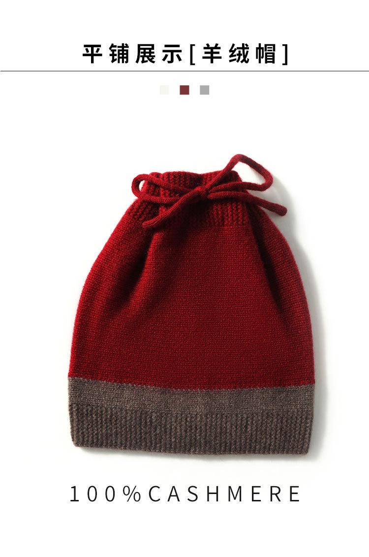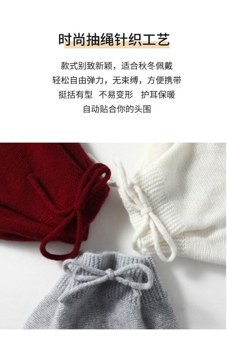 Gorro de punto 100% cachemir para mujer, otoño e invierno 2023, nuevo, informal, a juego con colores, con cordón, cálido, con protección para las orejas