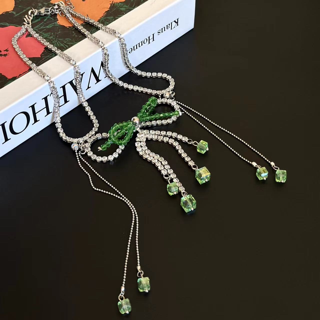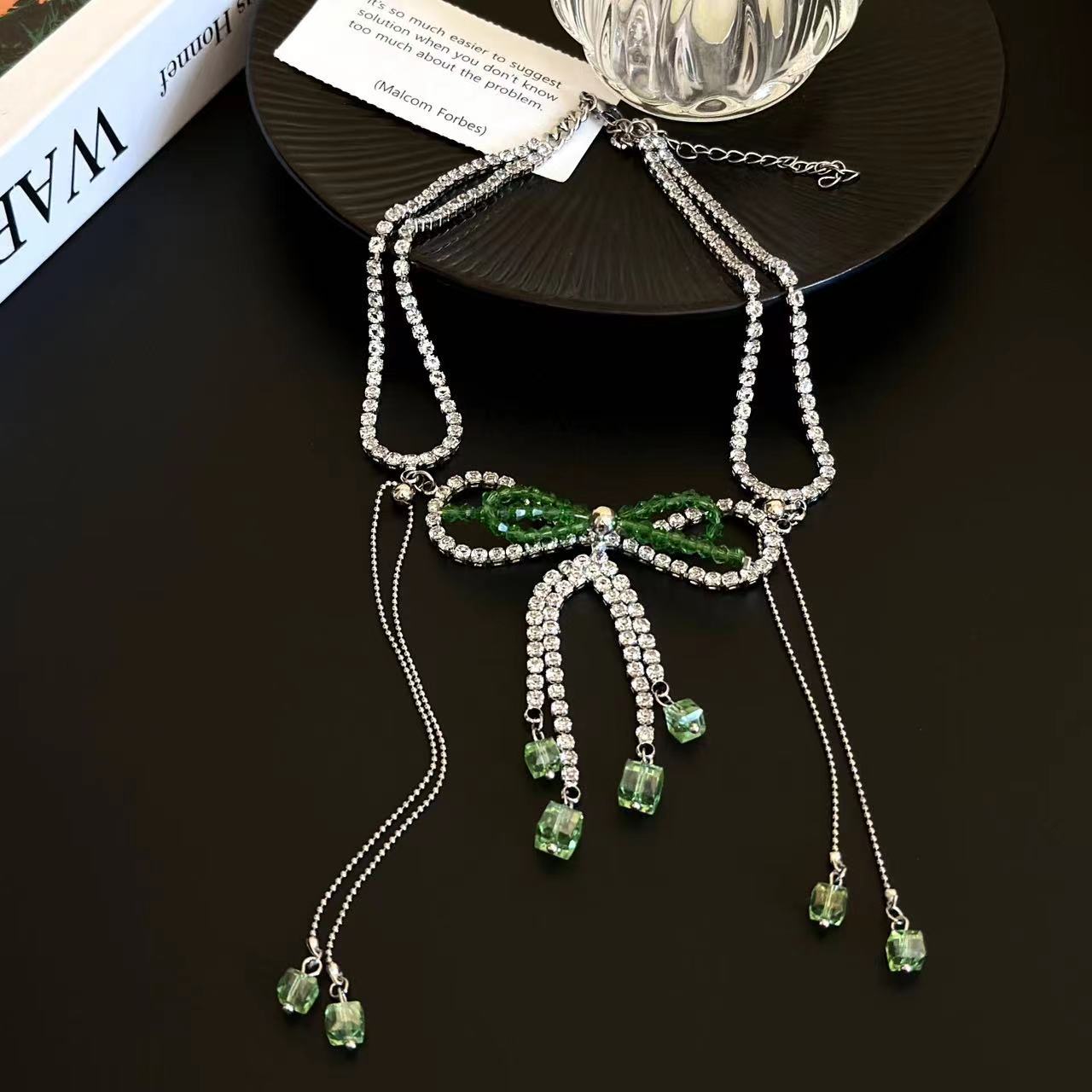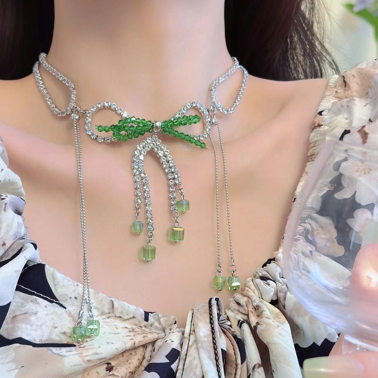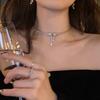 Collar con lazo de cristal y diamantes de imitación para mujer, elegante y fresco, de lujo, estilo gargantilla, cadena para el cuello.