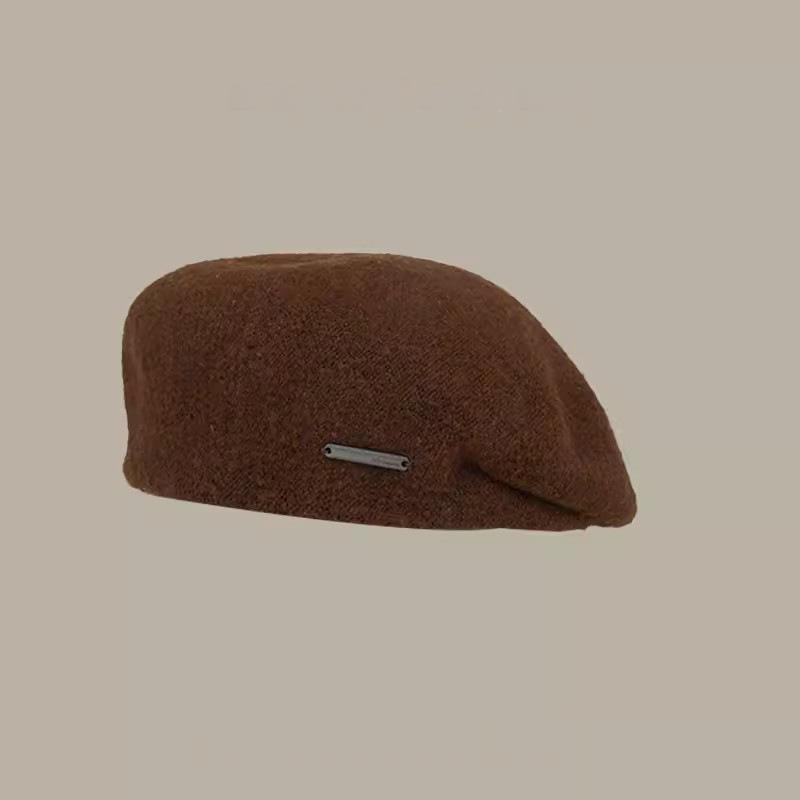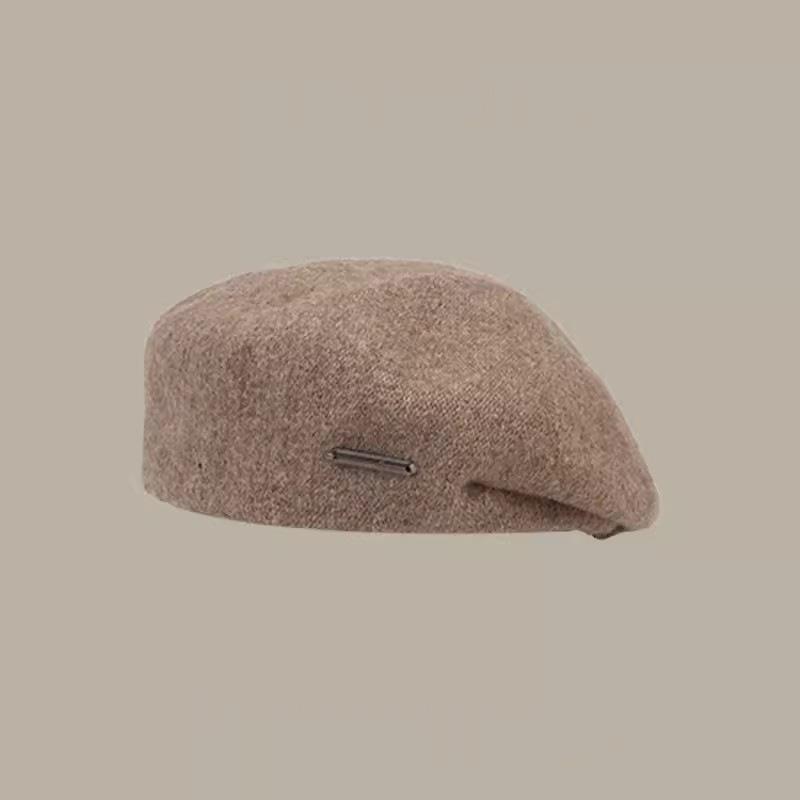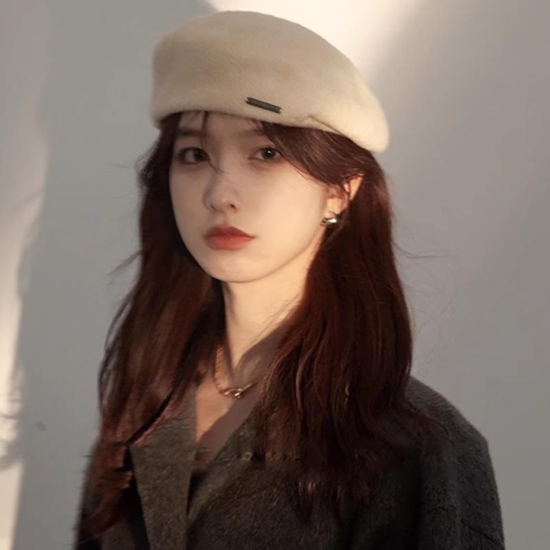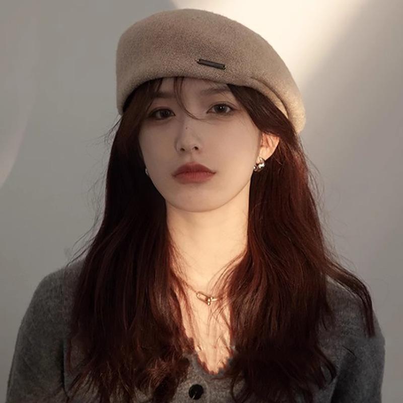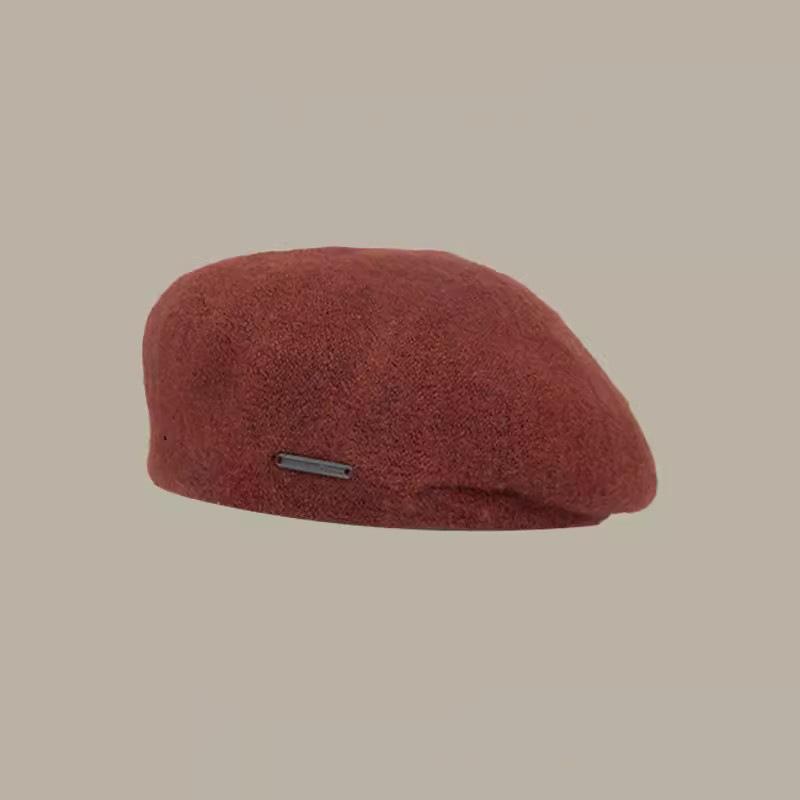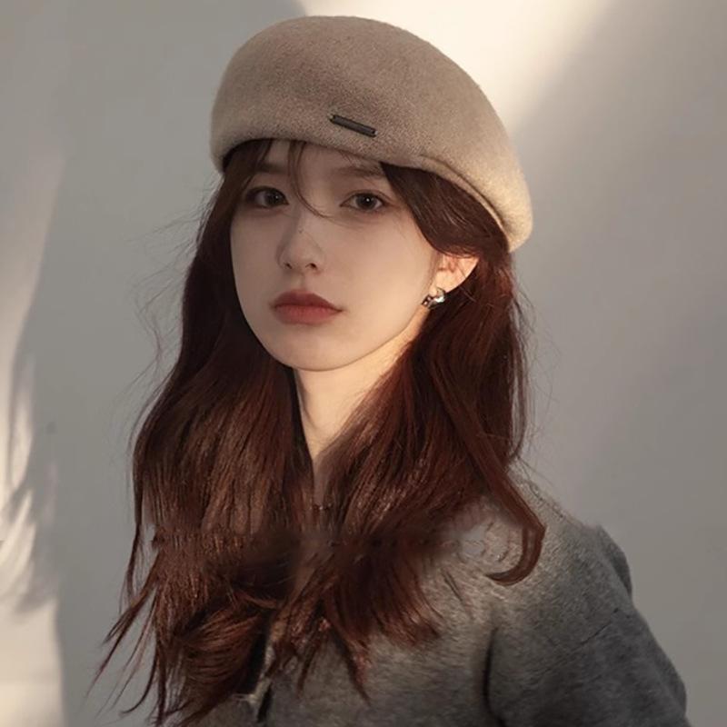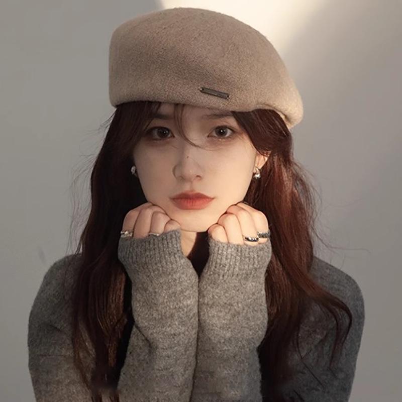 Boina de lana elegante de diseñador para mujer, estilo coreano, de invierno, versátil, con aspecto de rostro pequeño, de red roja, cálida, estilo pintor retro.