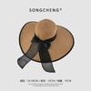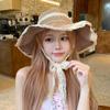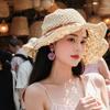 Sombrero de Paja Ajustable con Cordones Sombrero de Paja Calado para Mujer Verano Viaje Protección Solar Playa Mar Nuevo Sombrero para el Sol Sombrero para el Sol