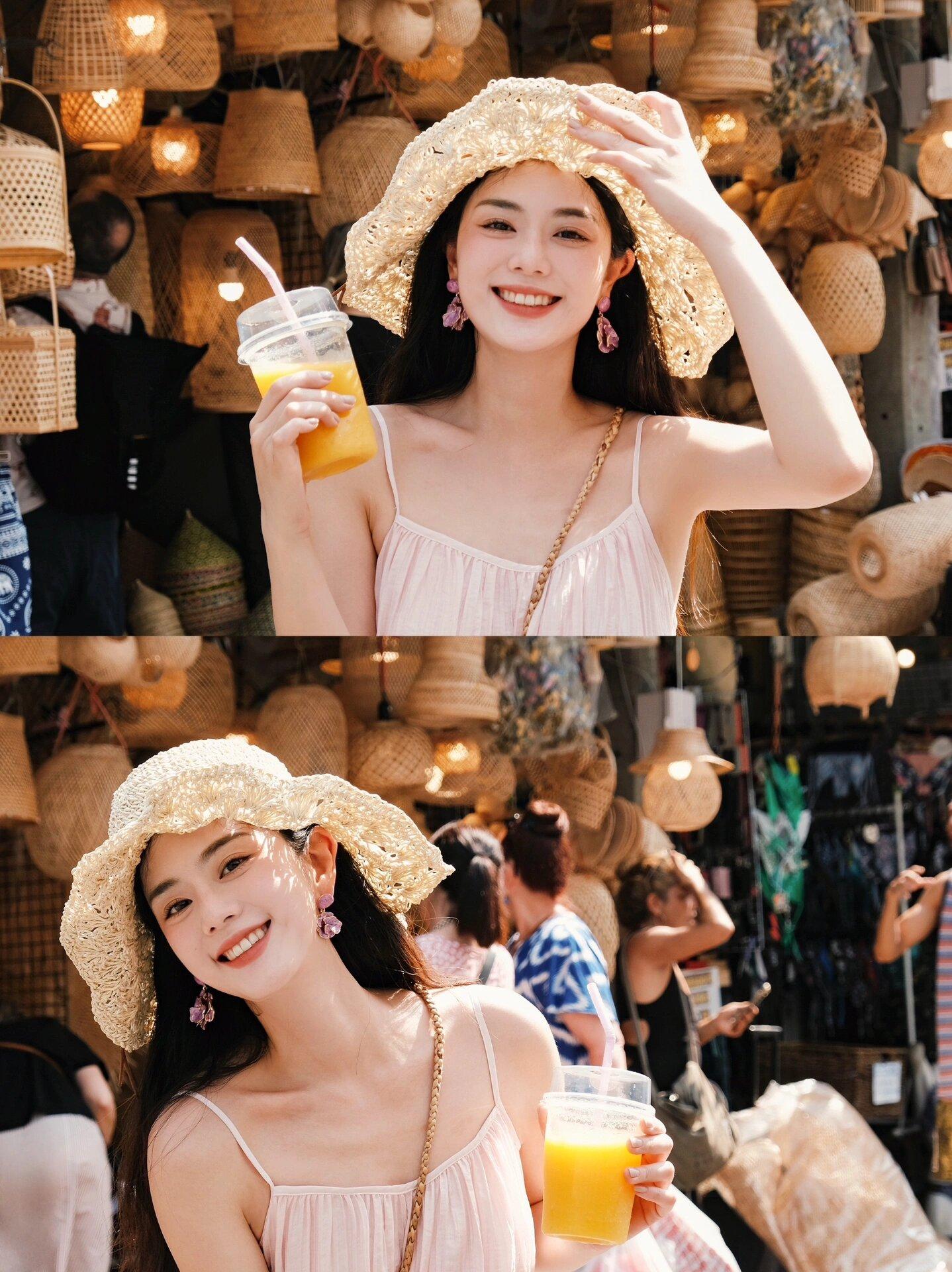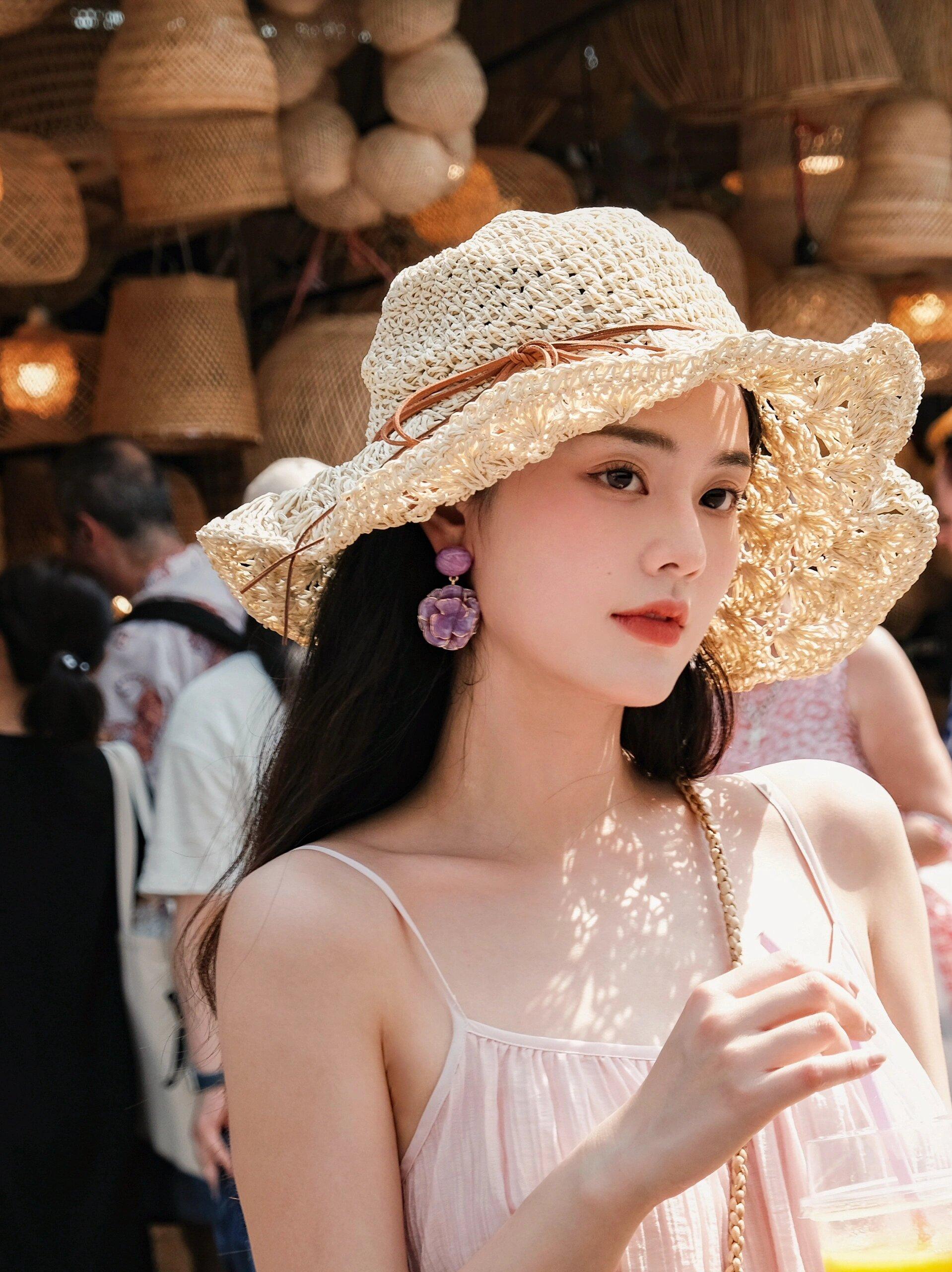 Pineapple small straw hat beige, a circle of lace] beige, A Circle of Lace] khaki, Filament Below With Hood Be...